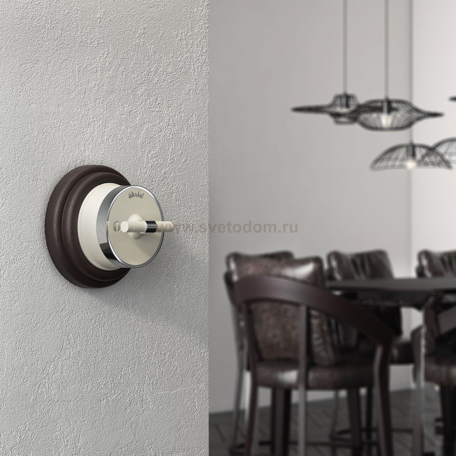 Дополнить образ помогут рамки Werkel из металла, стекла, и дерева, а так же аксессуары для накладного монтажа проводки.