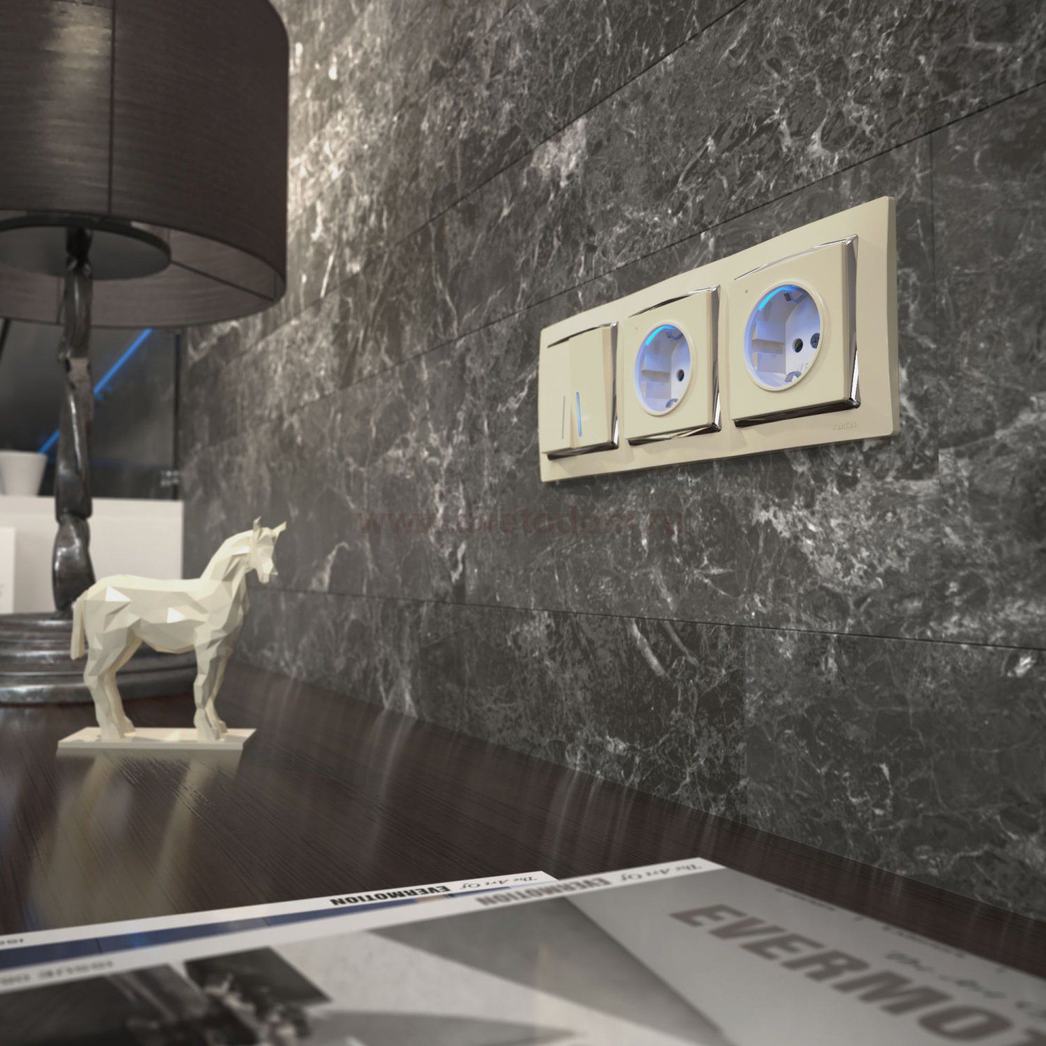Розетка с подсветкой создает мягкое приглушенное освещение, которое позволяет ориентироваться в помещении в темное время суток и удобно интегрировать вилки бытовых приборов в розеточное гнездо. В качестве подсветки используются экономичные и надежные SMD светодиоды. Подсветка создает равномерное рассеянное свечение, подходящее для использования даже в спальнях и детских. Розетка оборудована защитными шторками, обеспечивающими дополнительную безопасность.