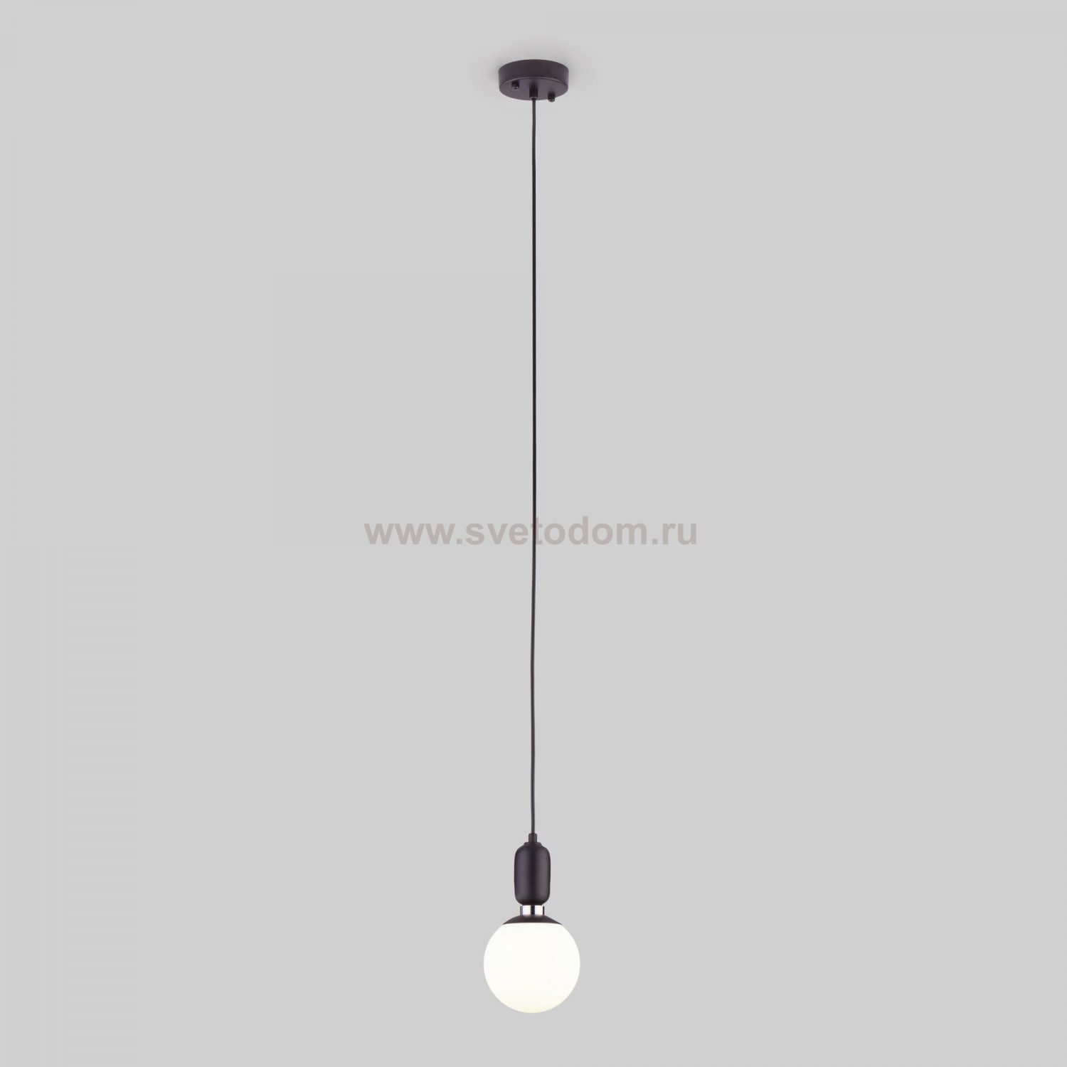 Подвесной светильник со стеклянным плафоном 50151/1 в черном цвете предназначен для создания дополнительного освещения и акцентной подсветки в современных интерьерах. Светильник со сменными лампами E27 создаст качественное освещение на площади 4 м кв. и подсветит рабочие зоны на кухне, в зале и в других местах.
