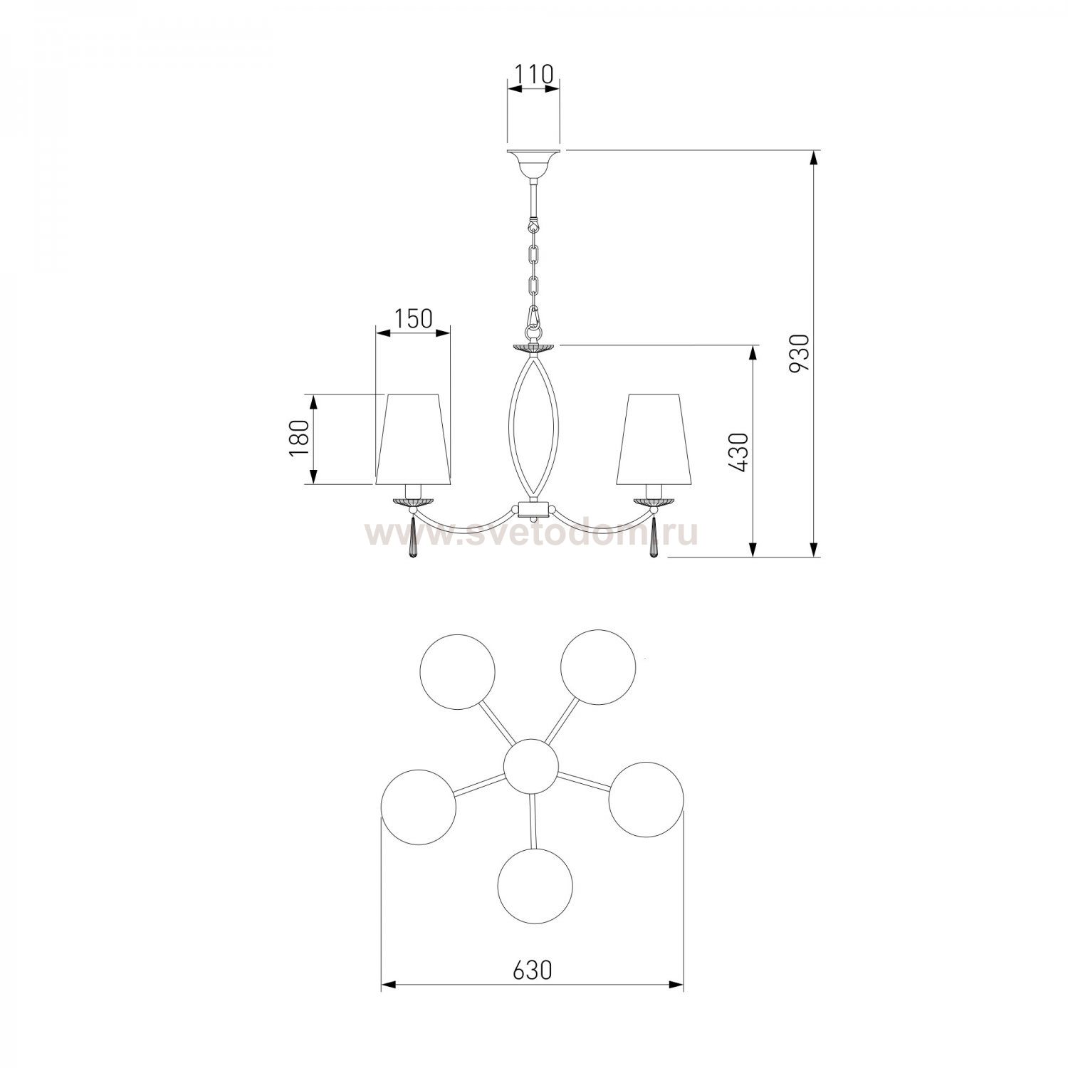 Подвесная люстра на 5 рожков цвета хром предназначена для создания основного освещения в современных и классических интерьерах, подходит для различных типов помещений: гостиная, спальня и рассчитана на площадь освещения 13 м².