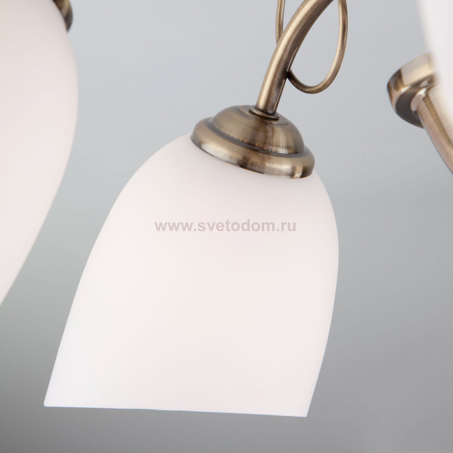 Роскошная люстра оснащена патронами с цоколем Е27, которые рассчитаны на максимальную мощность ламп 60 Вт. Потолочная люстра дополнена выразительными стеклянными матовыми плафонами. Арматура изготовлена из высококачественного металла с надежным защитным покрытием.