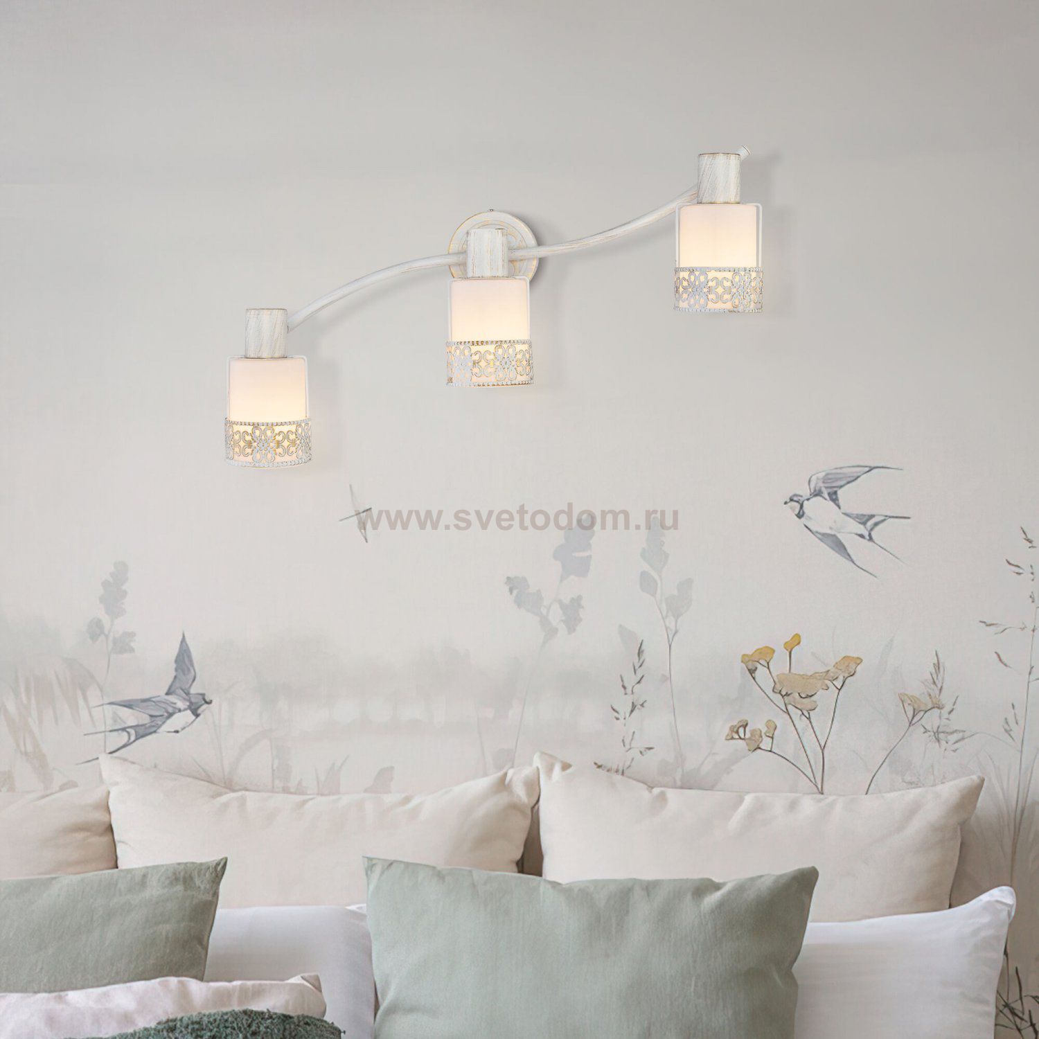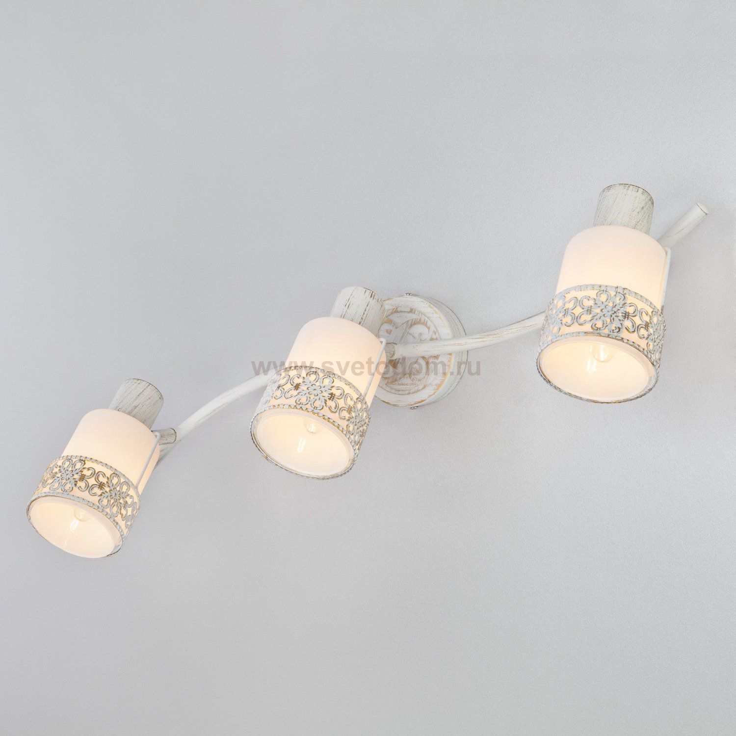 Спот с поворотными плафонами 20025/3 белый с золотом создаст качественное дополнительное освещение и станет эффектным дополнением к основному источнику света. Благодаря декоративным стеклянным плафонам спот создает мягкое равномерное свечение. В качестве источника света используются сменные лампы типа "Свеча" или "Шар" с цоколем E14. Патрон рассчитан на максимальную мощность ламп накаливания 40 Вт.