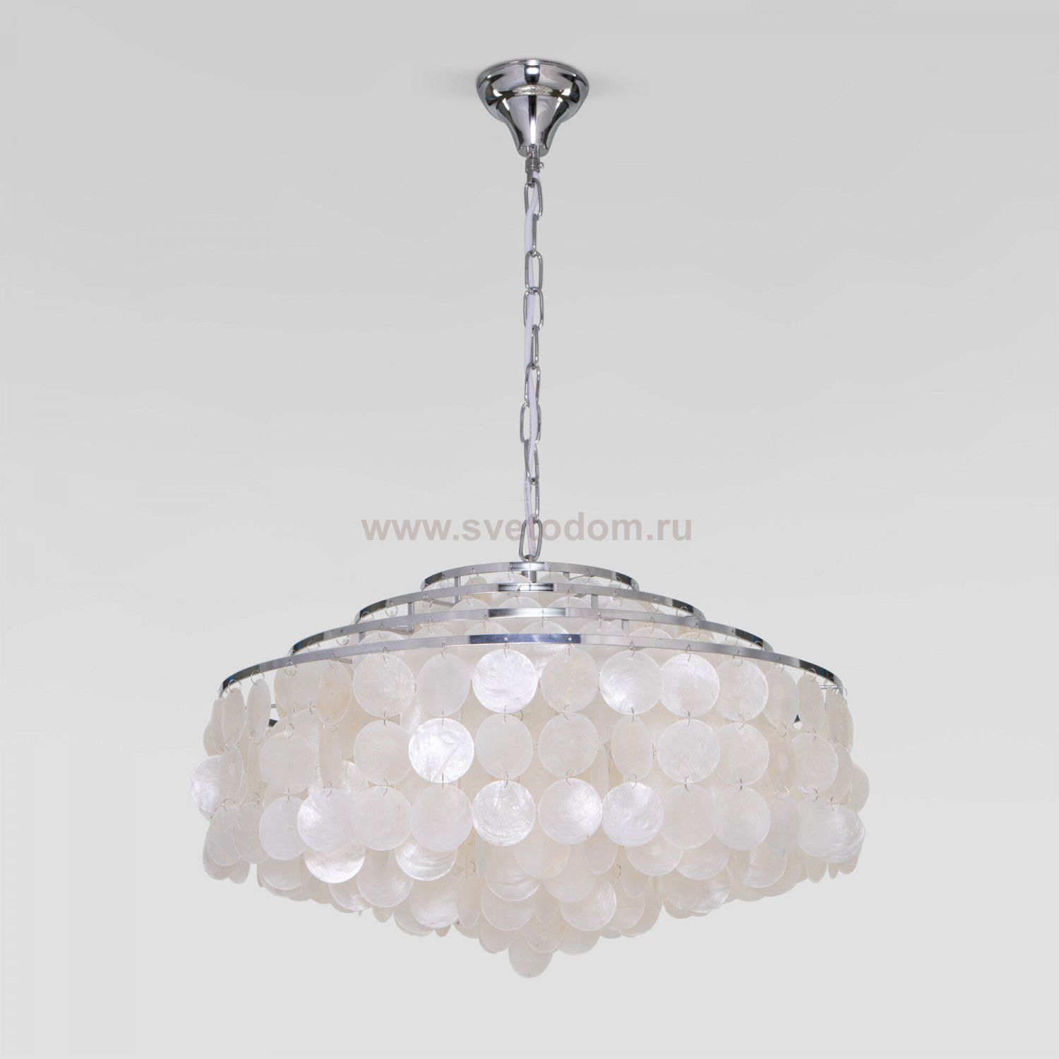 Люстра с перламутром 3535/6 хром / перламутр на 6 рожков предназначена для создания основного освещения в современных и классических интерьерах, подходит для различных типов помещений и рассчитана на площадь освещения 19 м².