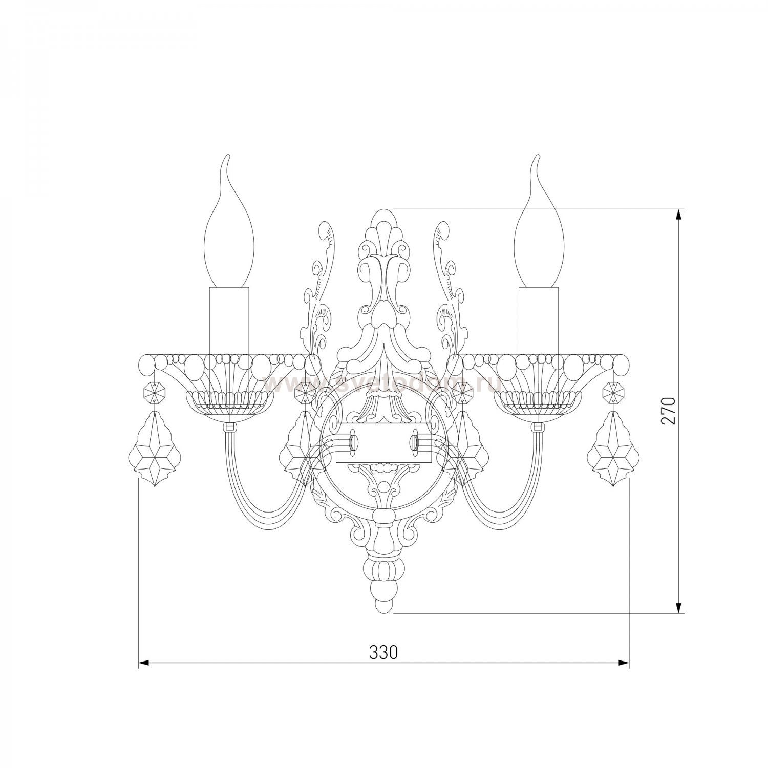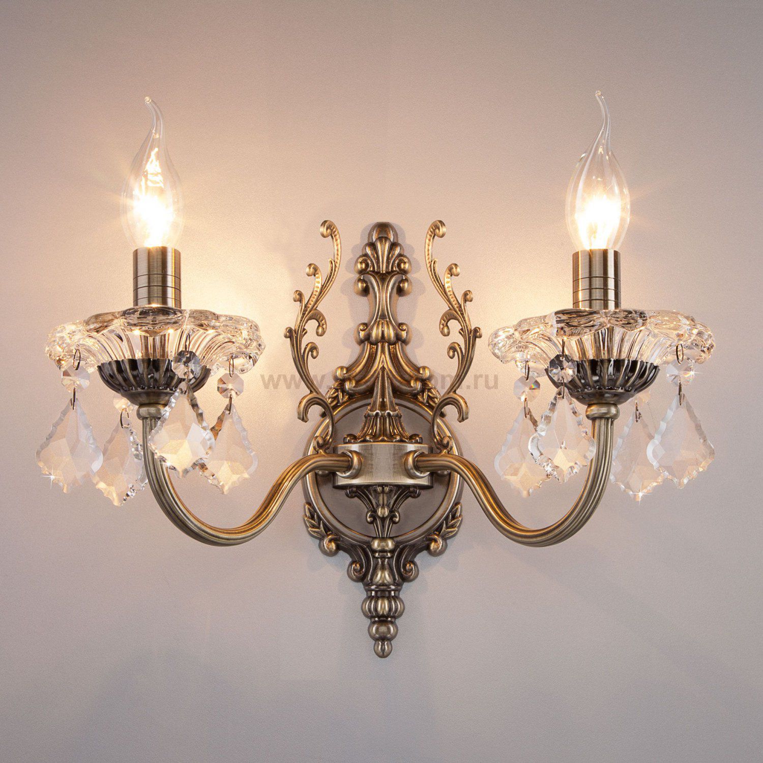 Бра с хрусталем 3281/2 античная бронза/прозрачный хрусталь Strotskis двухрожковый станет ярким световым акцентом в классических интерьерах и создаст качественное освещение на площади 10 м². Эффектные чаши подсвечников украшены хрустальными подвесками, которые искрятся в лучах света, наполняя помещение выразительным блеском. В качестве источника света используются сменные лампы типа свеча на ветру с цоколем E14. Патрон рассчитан на максимальную мощность ламп накаливания 60 Вт.