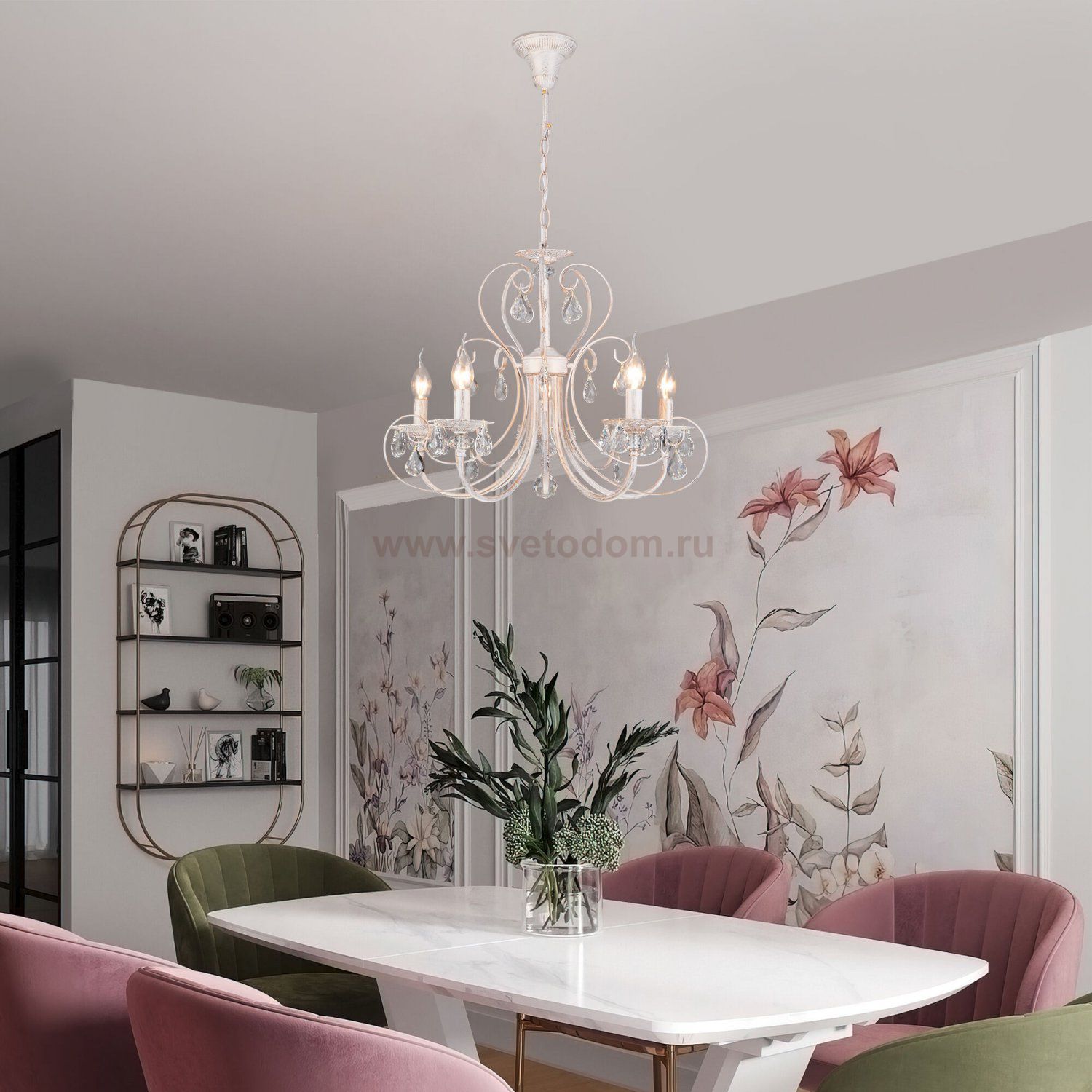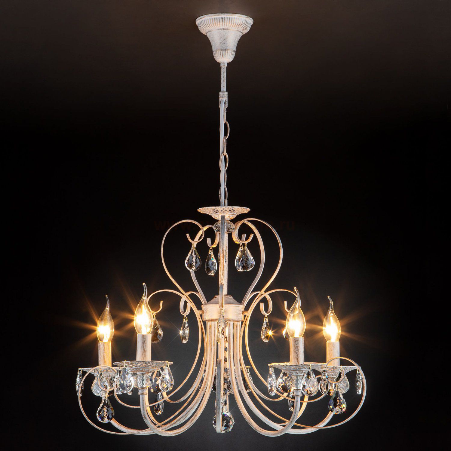 Классическая хрустальная люстра на 5 рожков в цвете белый с золотом / тонированный хрусталь преобразит потолочное пространство и создаст в вашем помещении комфортное полноценное освещение на площади 16 м кв.