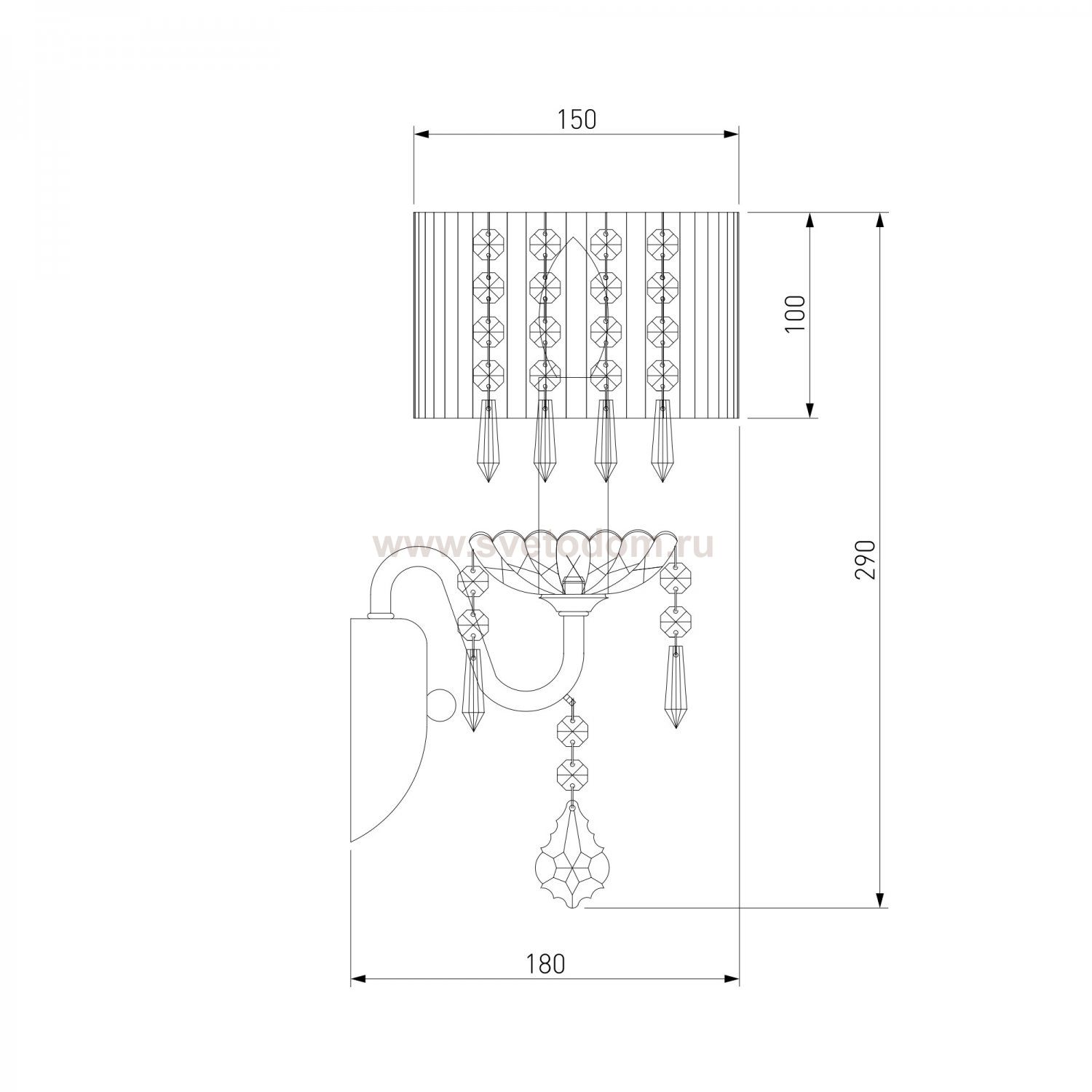 Корпус светильника выполнен из высококачественного и прочного металла с надежным покрытием. Бра легко устанавливается при помощи крепежной планки, которая обеспечивает надежную фиксацию светильника на стене. Классическое бра с легкими формами гармонично сочетается с хрустальными люстрами и станет отличным завершением композиции вашей гостиной или спальни.