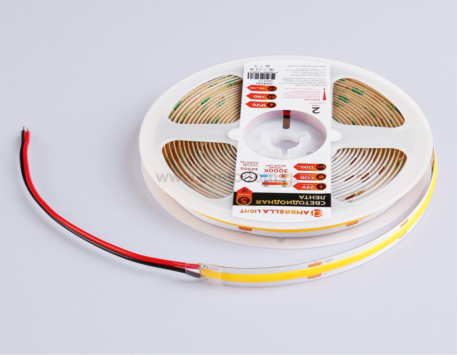 Светодиодная лента Ambrella Light GS4751 COB 528Led/14W m/ 24V IP20 3000K/ 5m*10mm*2mm (2 конт.) Гарантия