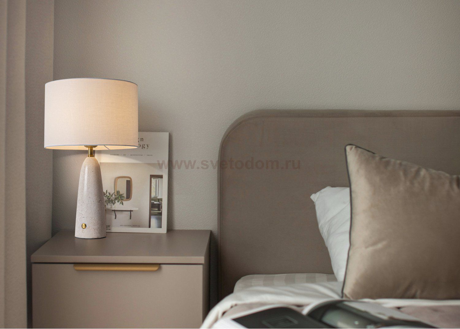 Белый тканевый абажур, мраморное основание в 4 цветовых решениях. Лампа E27 (в комплекте). Сенсорное управление. Элегантный дизайн с рассеивателем для мягкого света. Стильный аксессуар, который подчеркнет вашу индивидуальность