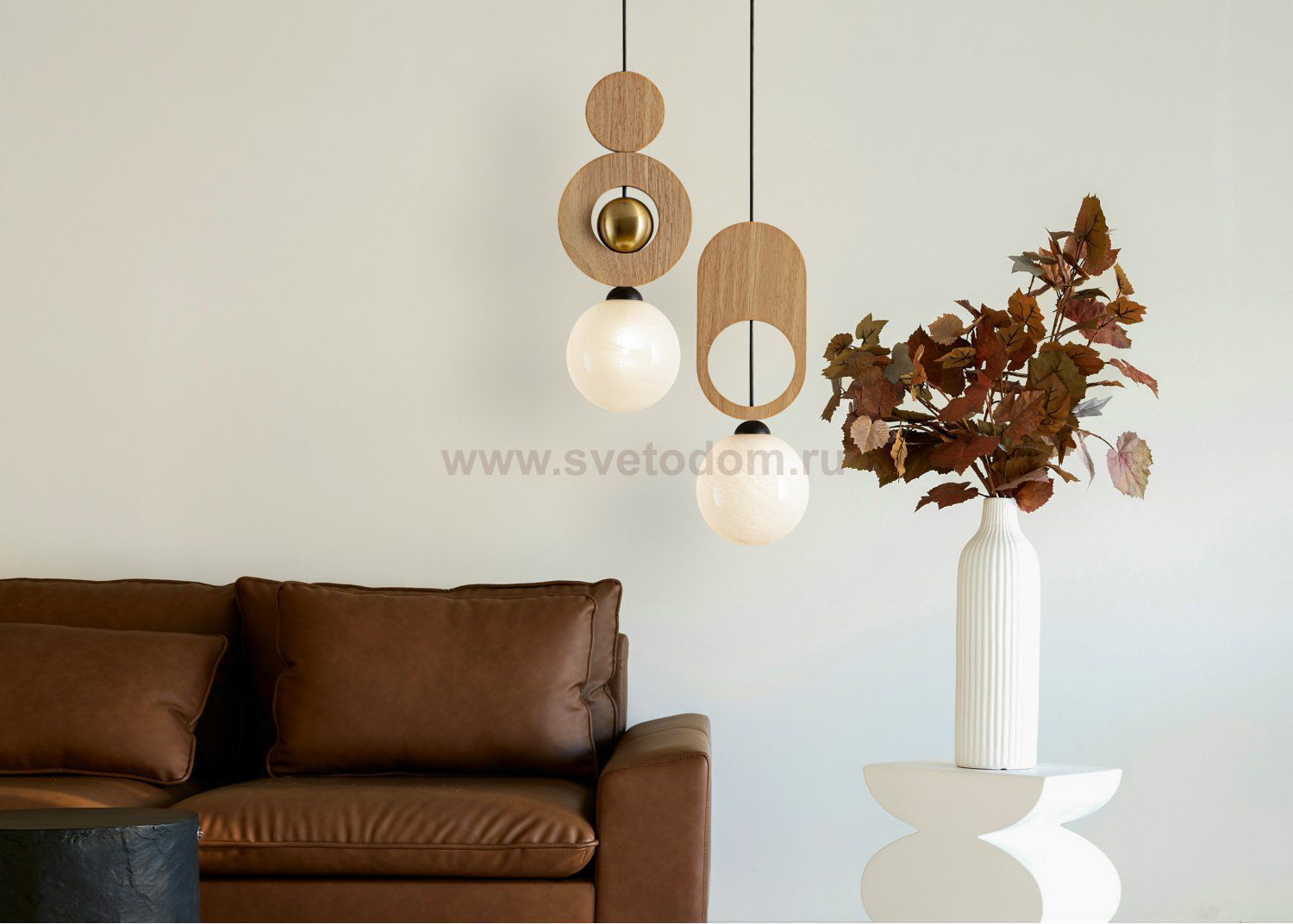 Металлическая арматура в цвете латунь. Деревянные и стеклянные сферические плафоны с мягким рассеянным светом. Лампа G9 (в комплект не входит.). Элегантный дизайн для уютных интерьеров.