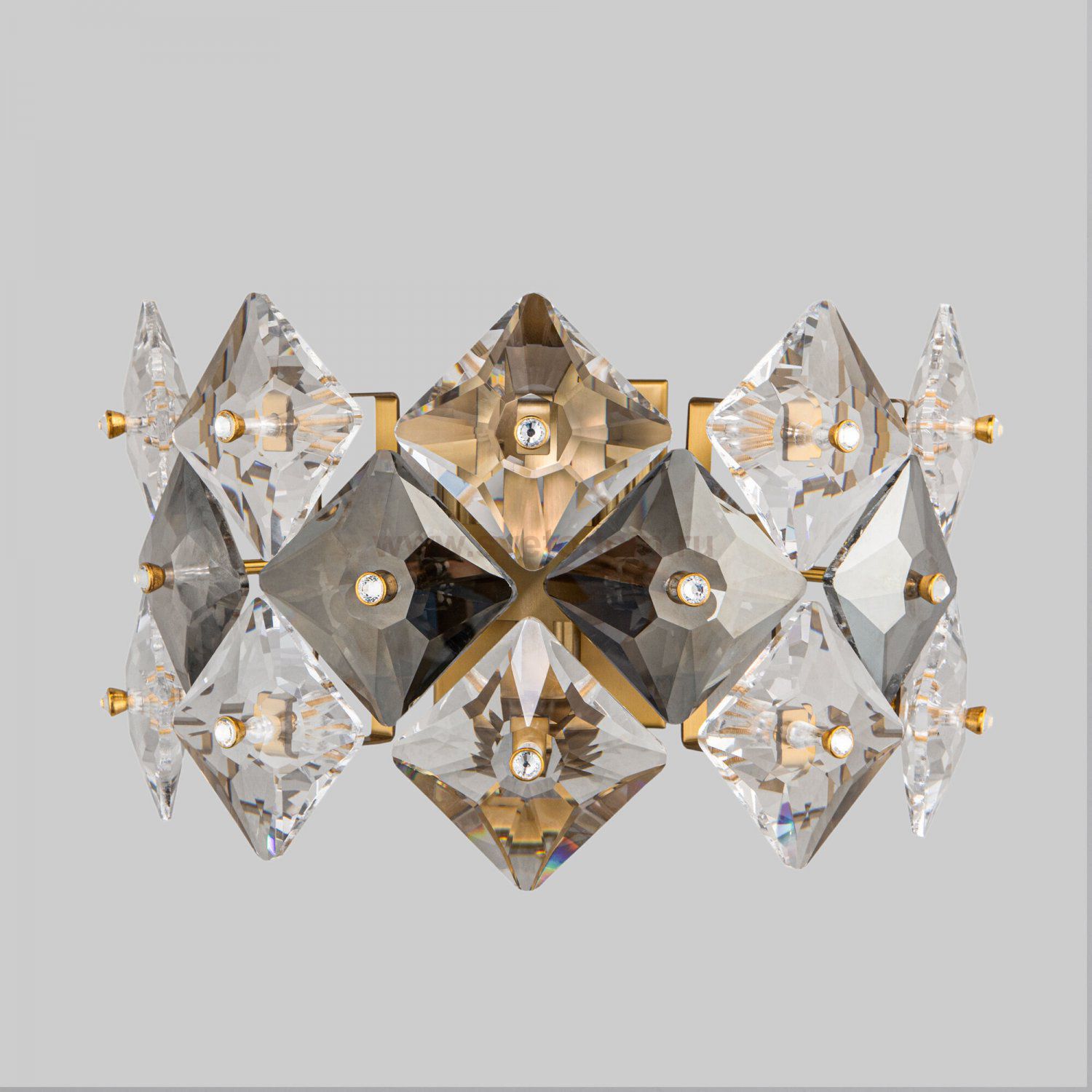 Rubis — элегантный светильник, наполняющий пространство роскошью. Изысканная арматура цвета латунь усеяна хрусталем Strotskis, который привносит атмосферу торжества и изысканности. Сочетание дымчатого и прозрачного хрусталя строгой геометрической формы добавляет акценты в интерьер. Лучи света, попадая на хрусталики, создают оригинальную игру света и бликов.