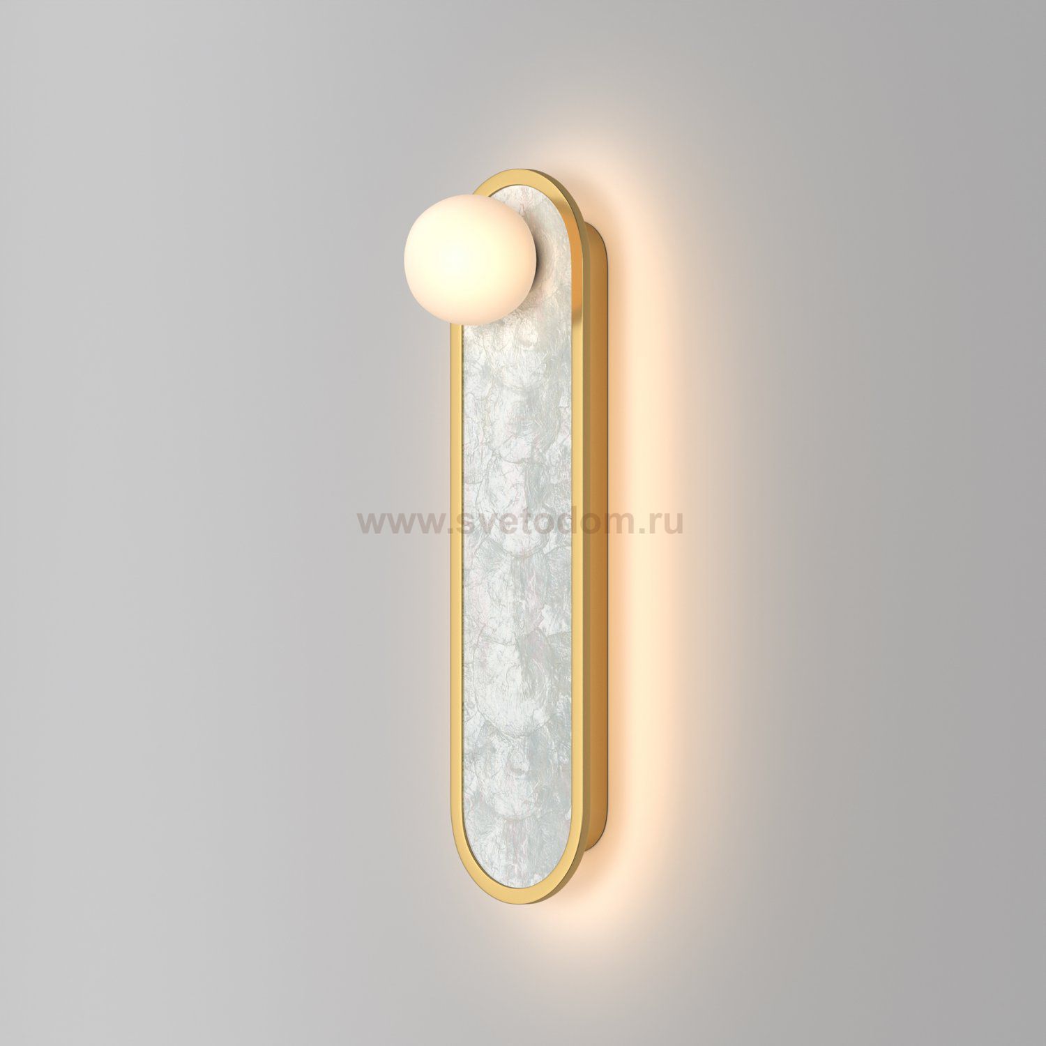 В серии представлены настенные светильники двух размеров и двух поколений. Декоративная мозаика из натурального перламутра играет нежнейшими бликами. Контраст текстур — переливы перламутра и матовая поверхность металла цвета латуни. LED-лента под акриловым рассеивателем создаёт ореол на стене. Предусмотрено трехступенчатое переключение температуры света через вкл-выкл (2700-3000-4000K), позволяющее создавать желаемую атмосферу. Эффектно светильники смотрятся и в комбинации друг с другом.