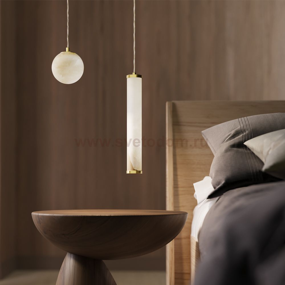 Серия Yora включает подвесные светильники двух форм и настенное бра. Плафоны из натурального алебастра с уникальным природным рисунком. Арматура: металл цвета сатинированной латуни. Встроенный LED-источник, оснащен трехступенчатым переключателем температуры (2700K-3000K-4000K) у подвесных моделей. Сенсорный включатель скрыт в основании бра при длительном удержании регулирует яркость освещения. Отлично смотрятся и в качестве одиночного акцента, и в композициях из нескольких светильников.