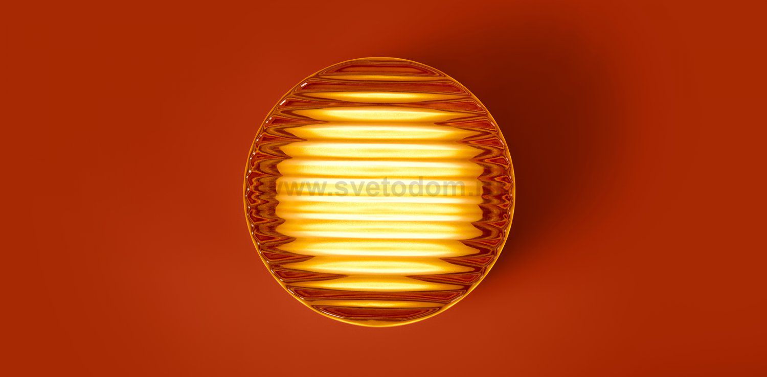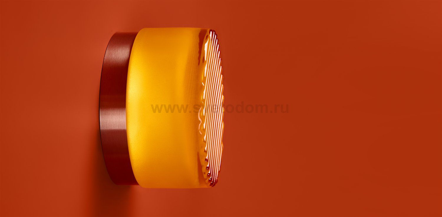 Металлическая арматура в цвете никель в трех рельефных основаниях. Плафоны, выполненные в приглушенно пшеничном и янтарном оттенках, доступны в двух размерах. LED источник света 2400К/2550К/3000K.