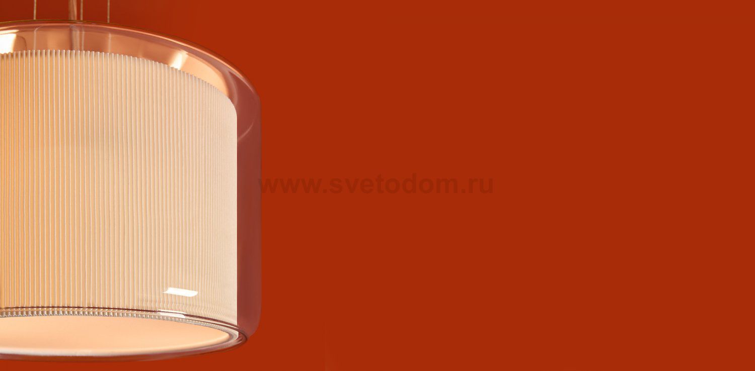 Сочетание стекла и тканевой плиссировки для мягкого рассеянного света. Лампы E27 (в комлекте). Особенность плафонов - их многослойность. В серии представлены подвесной, потолочные и настенный светильники.