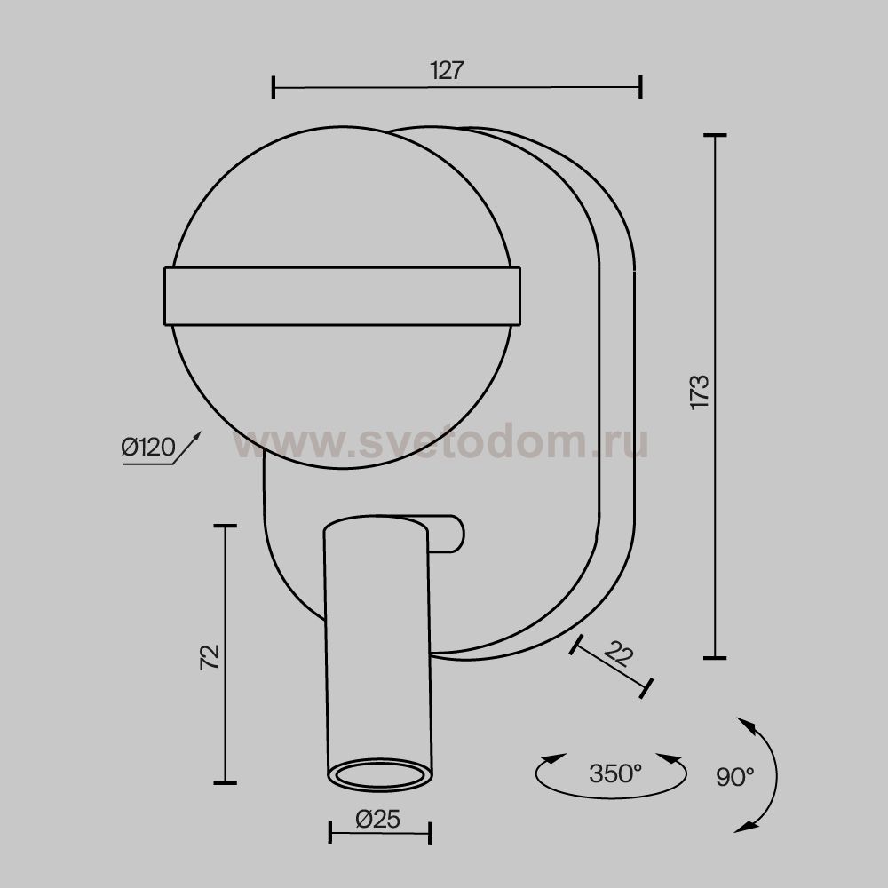 Данное значение указывает угол поворота, на который может поворачиваться светильник или угол рассеивания, на который светит лампа