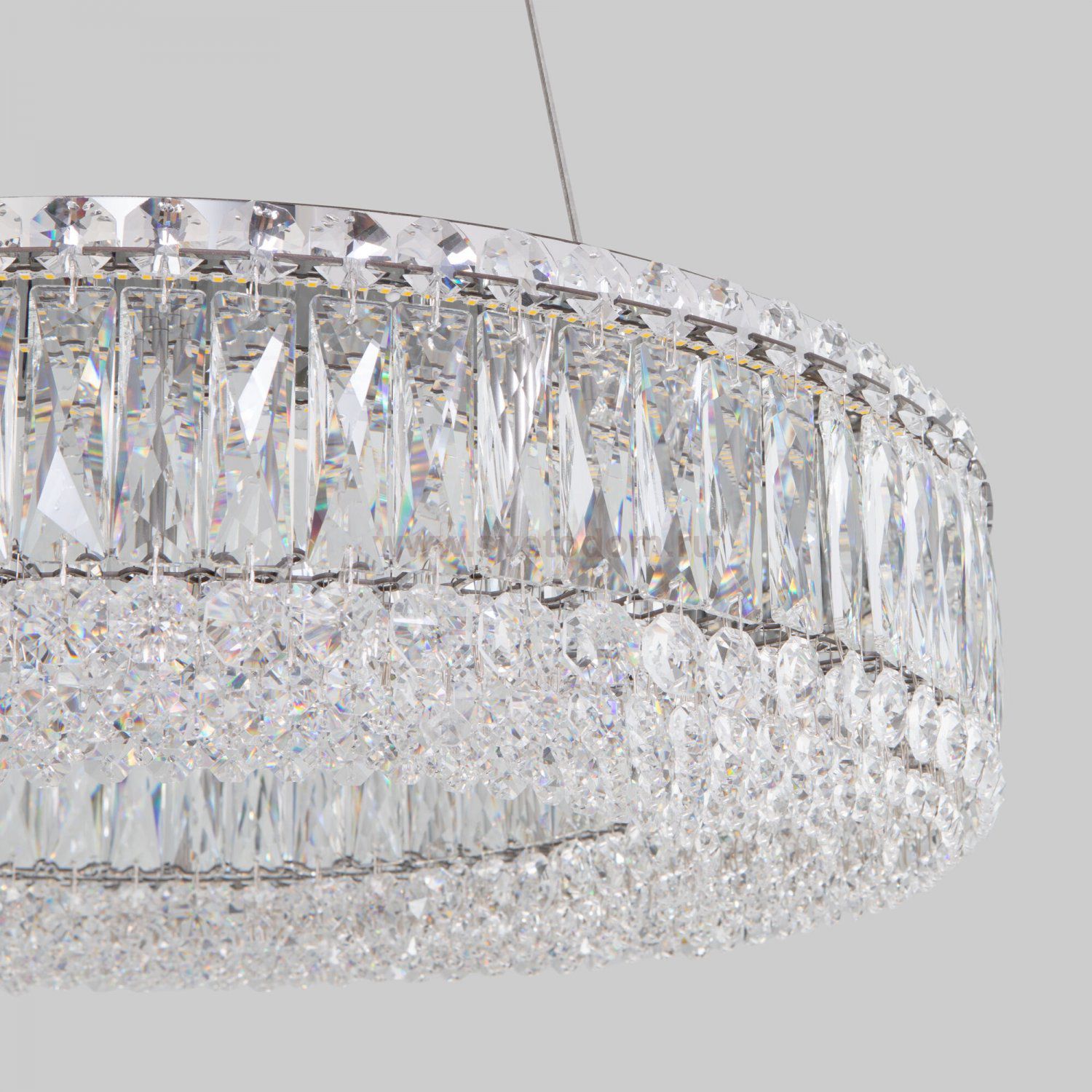 Светодиодная люстра Iride сочетает в себе современную форму и классическую роскошь хрусталя.