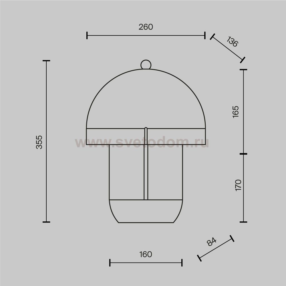 В основе дизайна — силуэт в форме «грибочка». Корпус светильника выполнен из натуральной керамики в трех цветах: шагреневый белый, глянцевые молочно-белый и нежный кашемир. LED-источник (3000К) с высокой световой отдачей (1400 лм) скрыт матовым акриловым рассеивателем и создает мягкий ореол под светильником. Сенсорный металлический шарик позволяет не только включать свет, но и регулировать его яркость. В комплекте предлагается два шара — в цвете сатинированной латуни или глянцевой платины.