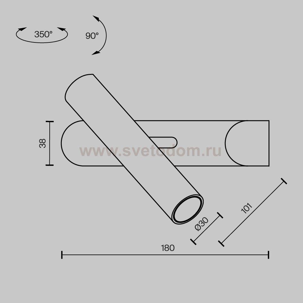 Данное значение указывает угол поворота, на который может поворачиваться светильник или угол рассеивания, на который светит лампа