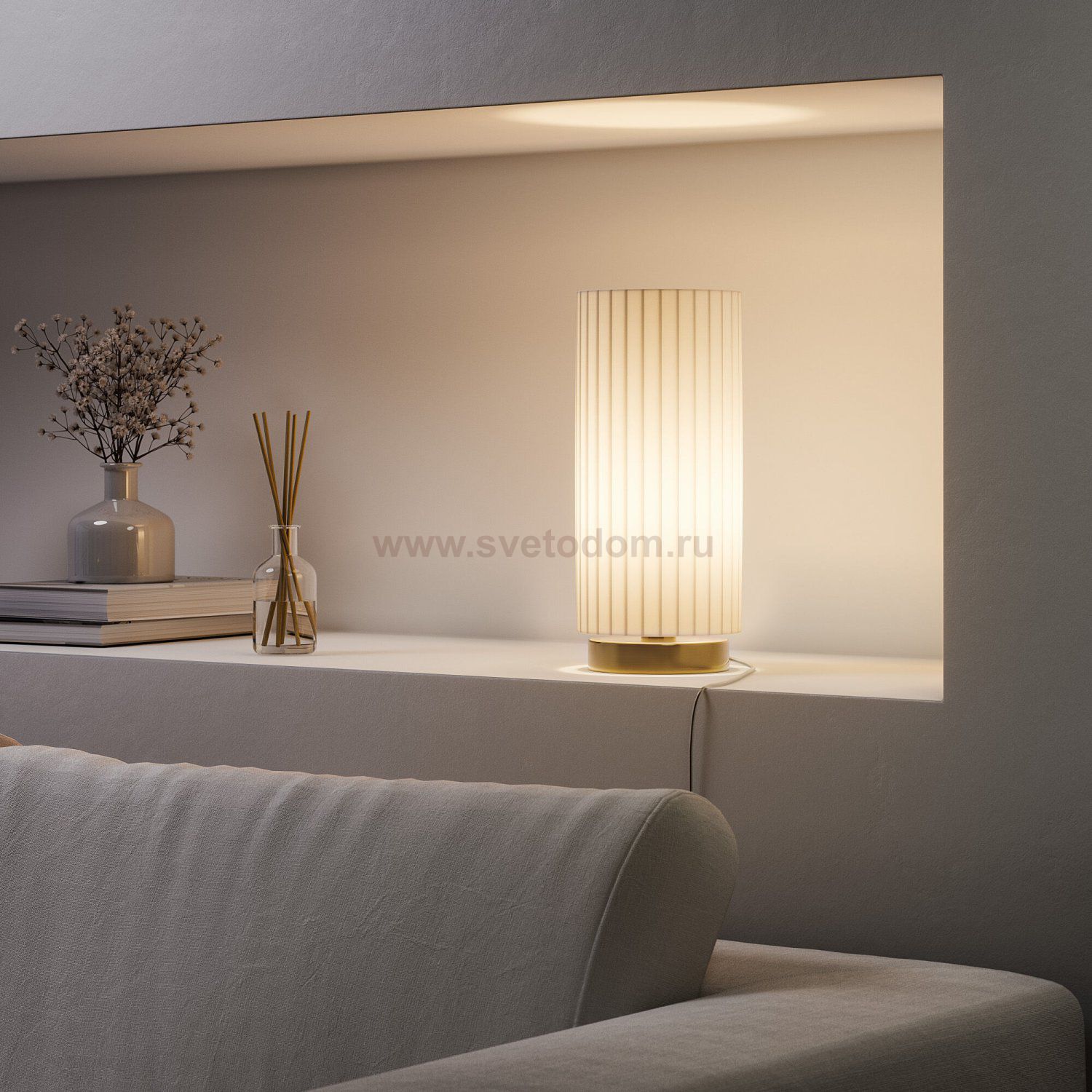 Благодаря поверхности плафона, выполненной из ткани, светильник излучает мягкий и нежный свет, идеально подходящий для спальни, гостиной или рабочего кабинета. Вертикальные складки тканевого плафона и арматура в цвете латунь придают минималистичнному дизайну современный и элегантный вид, который гармонично впишется в любой интерьер.