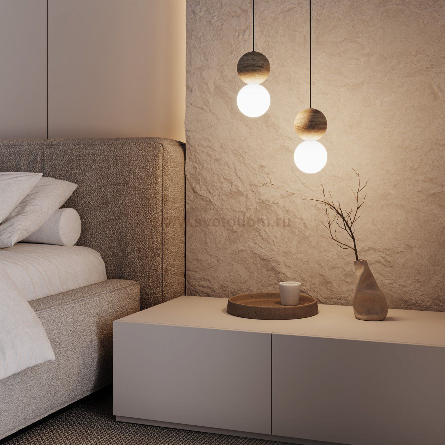 Подвесной светильник из коллекции Stone создаст неповторимый визуальный эффект в любом помещении. Натуральный камень травертин придает изделию природную энергетику, подчеркивая уникальность интерьера. Благодаря матовому стеклянному плафону светильник создает приятное ровномерное освещение, идеальное для чтения, отдыха или создания уютной атмосферы.