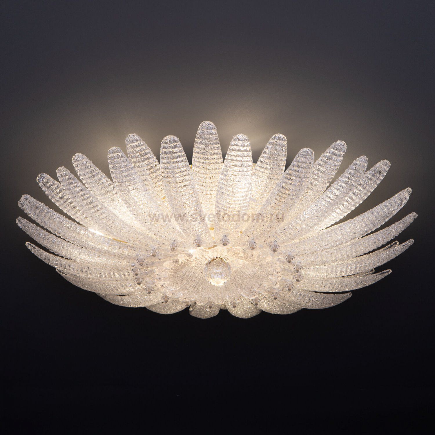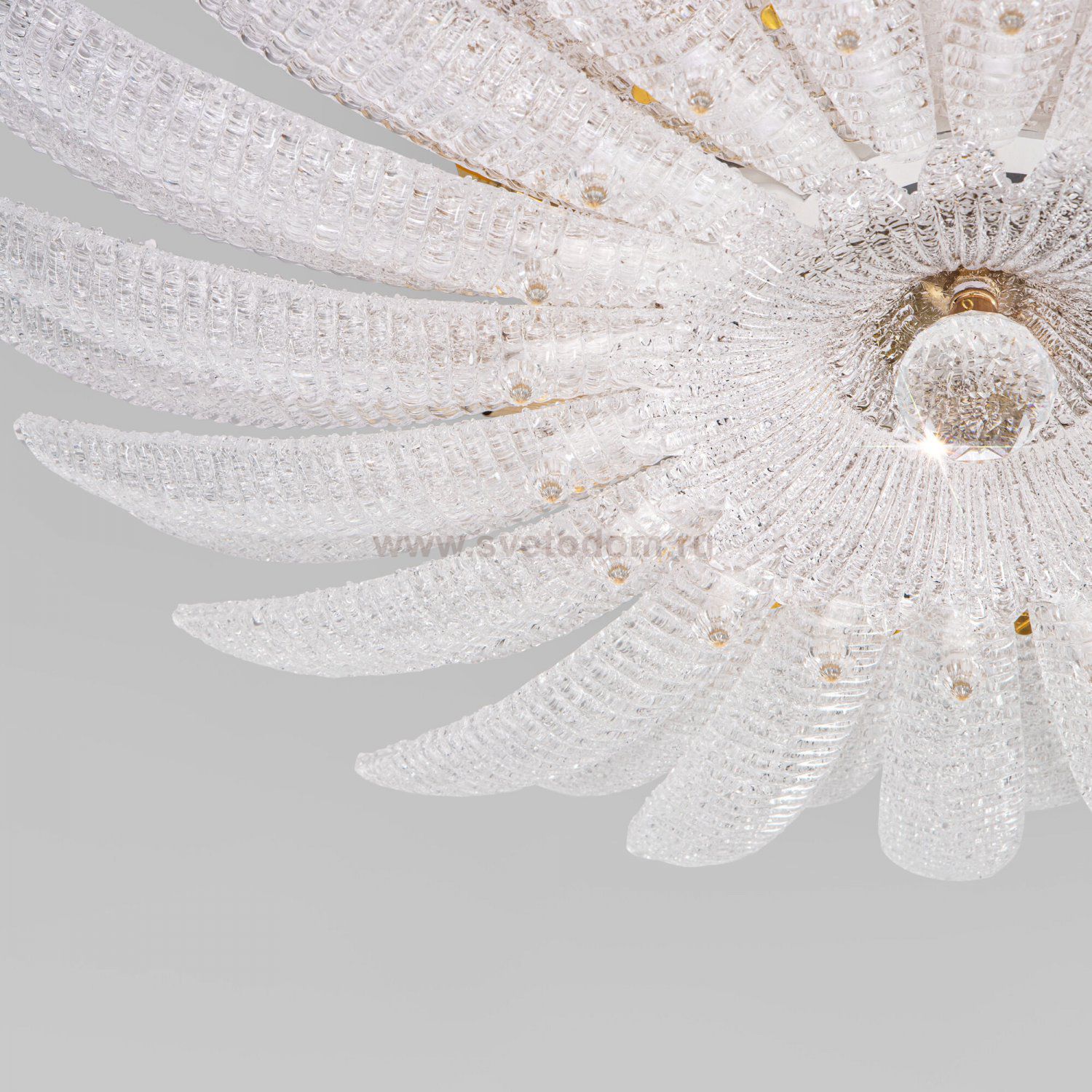 Потолочный светильник в форме цветка — изящное сияние в вашем интерьере. Светильник 101015/10 — не просто источник света, а настоящее украшение пространства. Рельефное стекло с алмазной крошкой создаёт эффект драгоценного цветка, застывшего в вечном цветении. В лучах света он оживает, наполняя комнату атмосферой утончённой роскоши и волшебства.