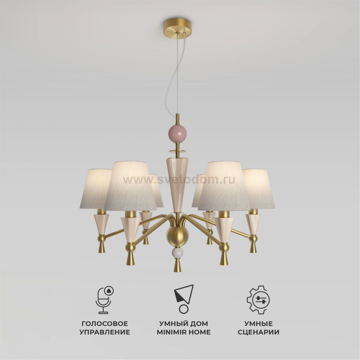 Люстра для тех, кто ценит вечные ценности: надёжная латунная арматура с благородным блеском прослужит долгие годы, не теряя лоска; тканевые абажуры создают деликатное освещение, а керамический декор подчёркивает безупречный вкус владельца.