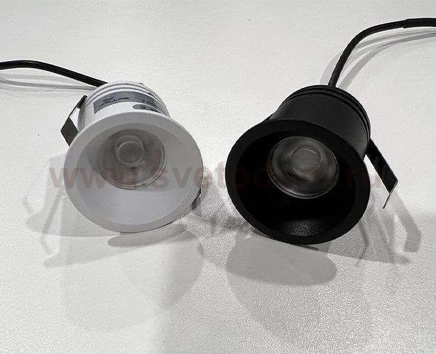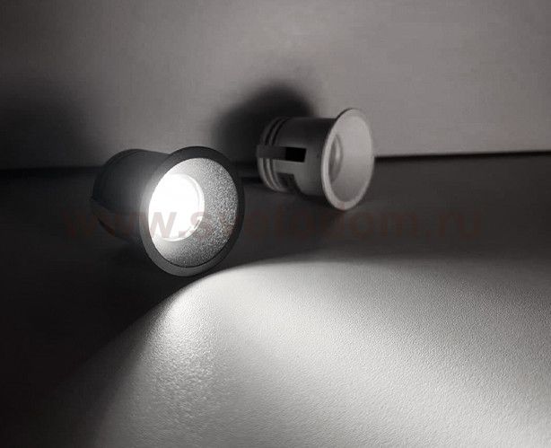 Миниатюрный встраиваемый светильник с утопленным металлическим корпусом черного или белого цвета. Минимальная высота встраиваемой электрической части. В комплекте светодиодный модуль. Отлично подходит для точечной подсветки в современных интерьерах.