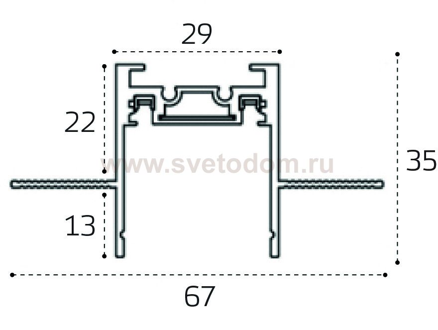 Встраиваемый магнитный шинопровод 2м системы KREATOR. Напряжение 48V.