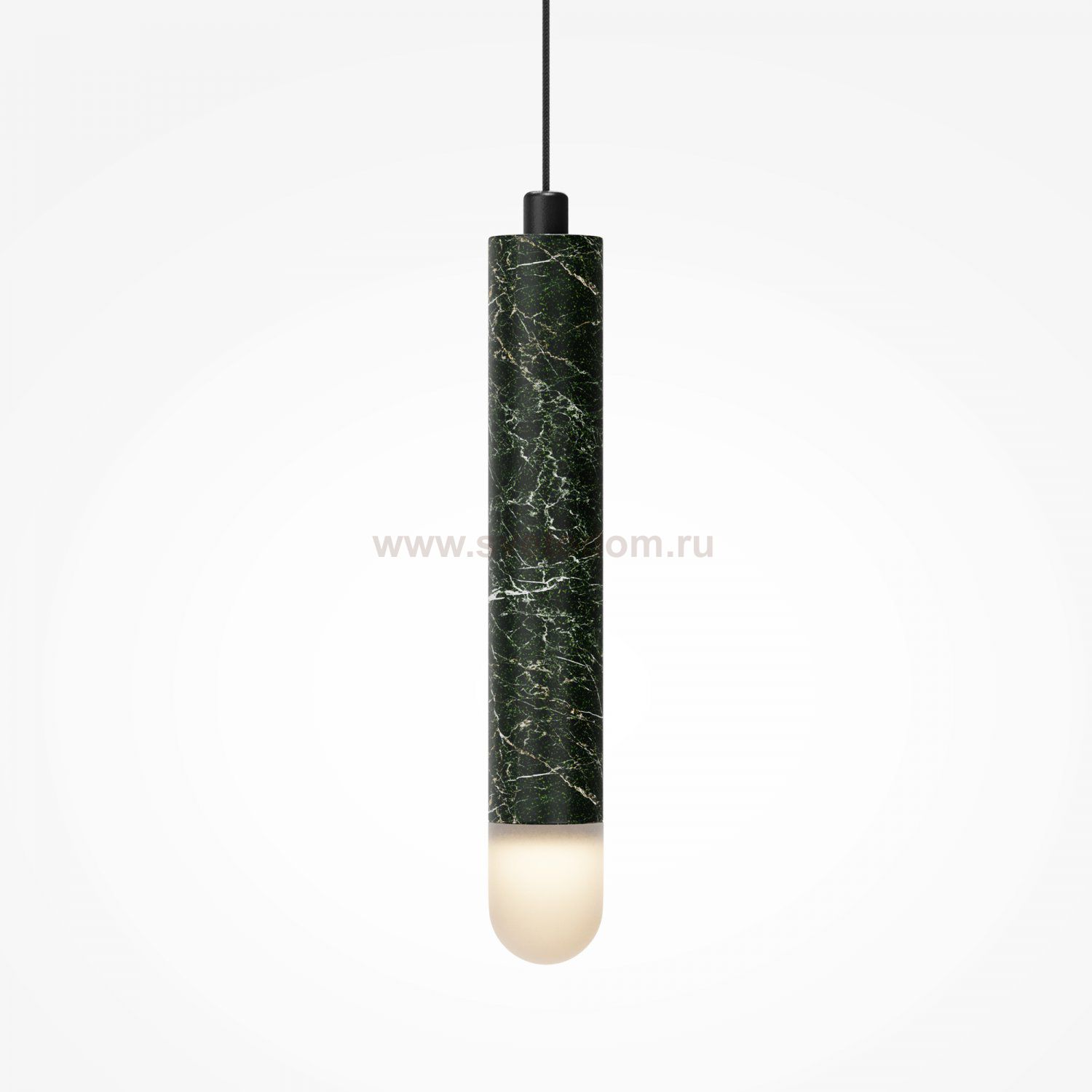 Главный акцент серии — натуральный зелёный мрамор с его неповторимым природным рисунком. Чёрная металлическая арматура создаёт гармоничный контраст. LED-источник с температурой 3000К, скрытый за акриловым рассеивателем, создаёт атмосферную подсветку для деликатного зонирования. В серии представлены подвесы двух форм — конус и вытянутый цилиндр, которые можно использовать как сольные акценты или комбинировать в многоуровневые композиции, меняя длину провода (3000 мм).