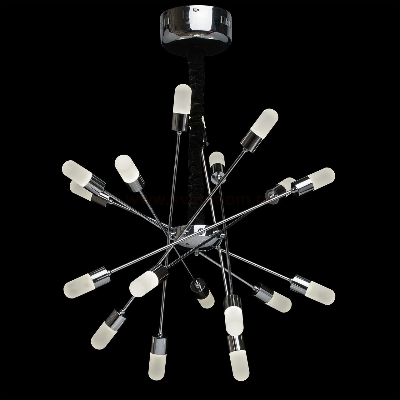 Арматура выполнена из сплава металла и гальванизирована в цвет хрома. Плафоны цилиндрической формы из белого матового акрила. В светильнике предусмотрена возможность изменения угла наклона рожков и геометрии светильника в целом. Светодиоды обеспечивают яркий белый свет 4200-4500К. Комментарий