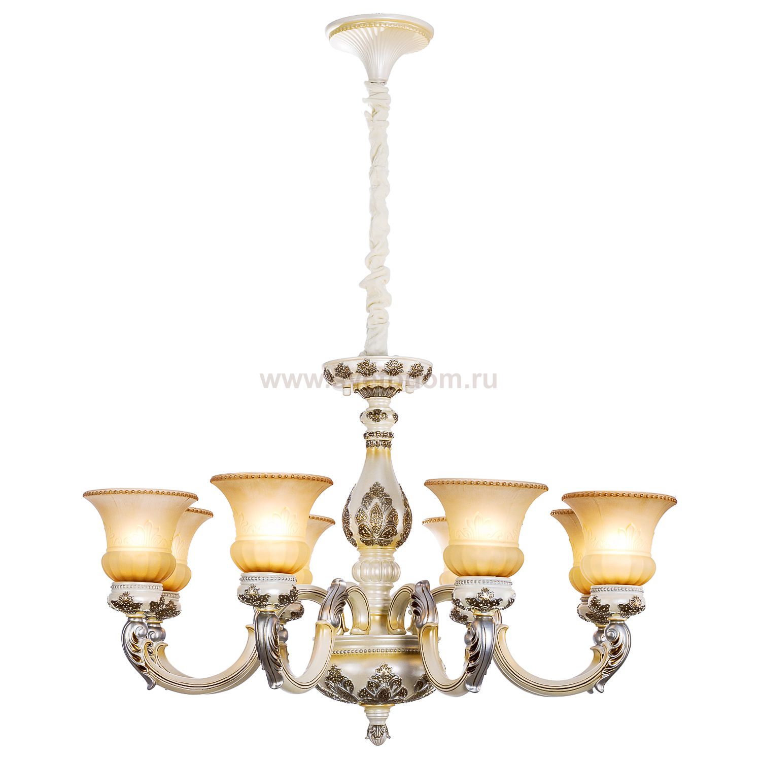 Люстра классическая 33056/8WT WT от бренда ЭкономСвет. Каркас выполнен из материала металл, цвет бежевый. Плафоны (светорассеиватели) выполнены из материала стекло, цвет бежевый. Цоколь E27 рассчитан на лампы максимальной мощности до 40 Вт, а максимальная площадь освещения составит до 18 м?.