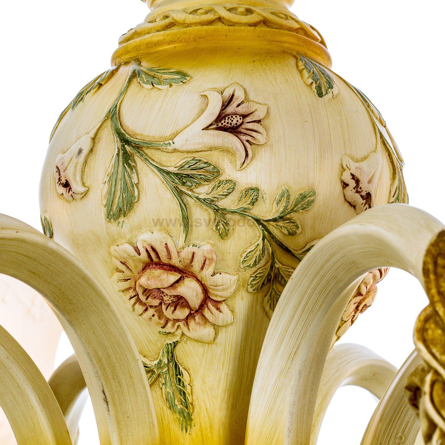 Люстра классическая 33090/8YL YL от бренда ЭкономСвет. Каркас выполнен из материала металл, цвет белый. Плафоны (светорассеиватели) выполнены из материала стекло, цвет бежевый. Цоколь E27 рассчитан на лампы максимальной мощности до 40 Вт, а максимальная площадь освещения составит до 18 м?.