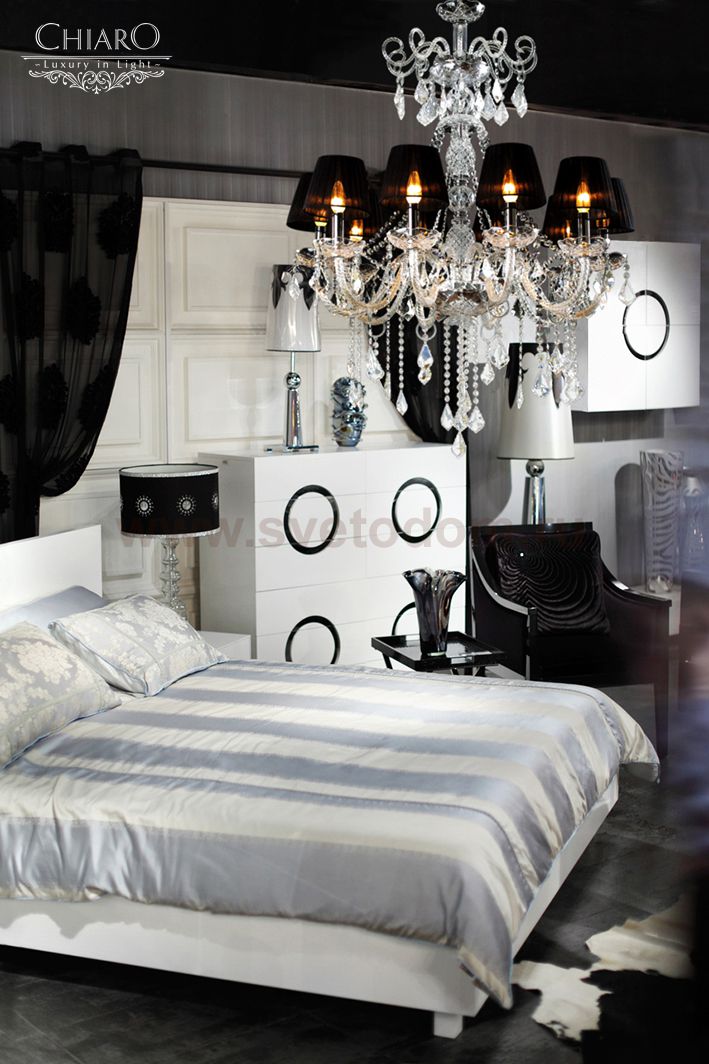 Металлическое основание цвета хрома, текстильные абажуры, декоративные элементы из стекла, хрустальные подвески Место применения
