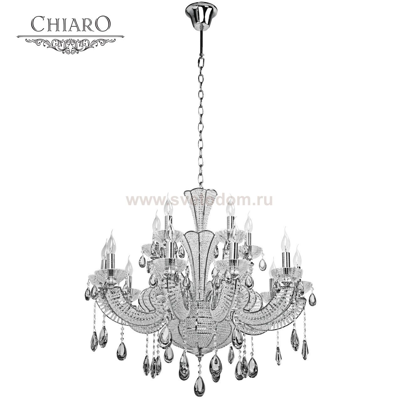 Всё великолепие и роскошь русского ампира передаёт роскошная форма светильника Лаура! Хромированные элементы арматуры, богато украшенные хрустальными бусинами, живописно рисуют растительный орнамент декора. Нижняя центральная часть светильника создана в виде императорской короны, которая венчает весь непревзойдённый образ царственного Света! Люстра, достойная екатерининской эпохи, сама великая Екатерина оценила бы такой достойный элемент дворцовых покоев! Хрустальные каплевидные подвески своими тонко проработанными гранями радужно переливаются на свету, играя от малейшего дуновения. Многоярусный светильник Лаура станет достойным украшением роскошного интерьера, демонстрируя изысканность вкуса и благосостояние всего дома!