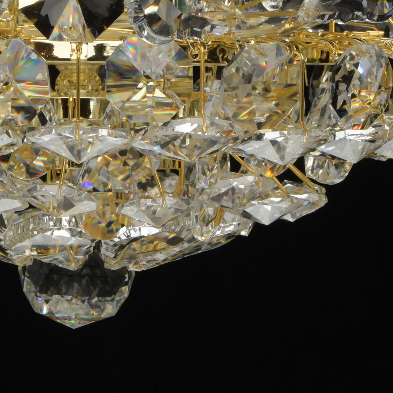 Светильник декорирован прозрачным хрусталем высшей категории формы дубовый лист, миндаль, октагон, шар. Комментарий