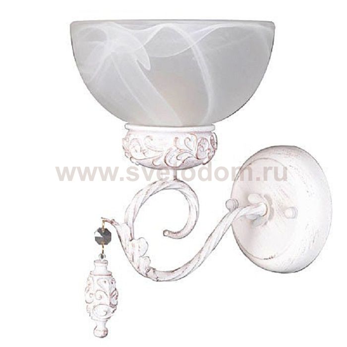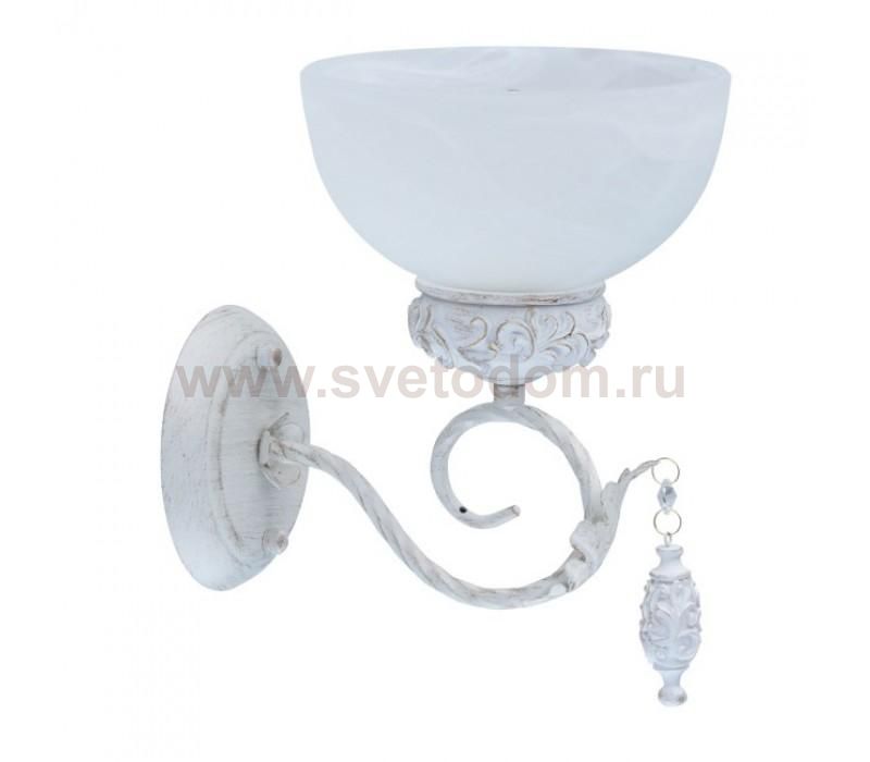 Описание модели 347028701: Изящное и грациозное бра из коллекции «Фелиция» наполнит обстановку комнаты величественной красотой. Основание из металла белого цвета дополнено эффектом патинирования в цвет золота. Благодаря такому сочетанию светильник не просто освежит интерьер, но и привнесет в него дух благородной старины. Плафон из алебастрового стекла классической формы также навевает мысли об античных временах, а живописный декор в виде подвеса из искусственного каучука, окрашенного в цвет основания, и резных элементов подчеркнет утонченную технику исполнения светильника.