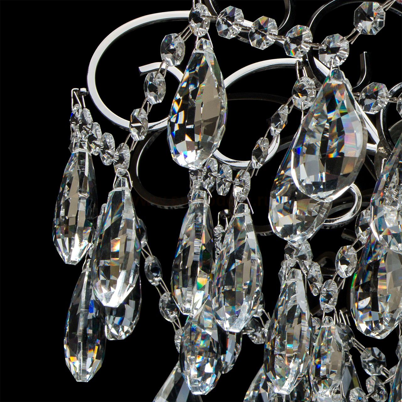 Металлическое основание цвета никеля, декоративные подвески из хрусталя. Материал плафона