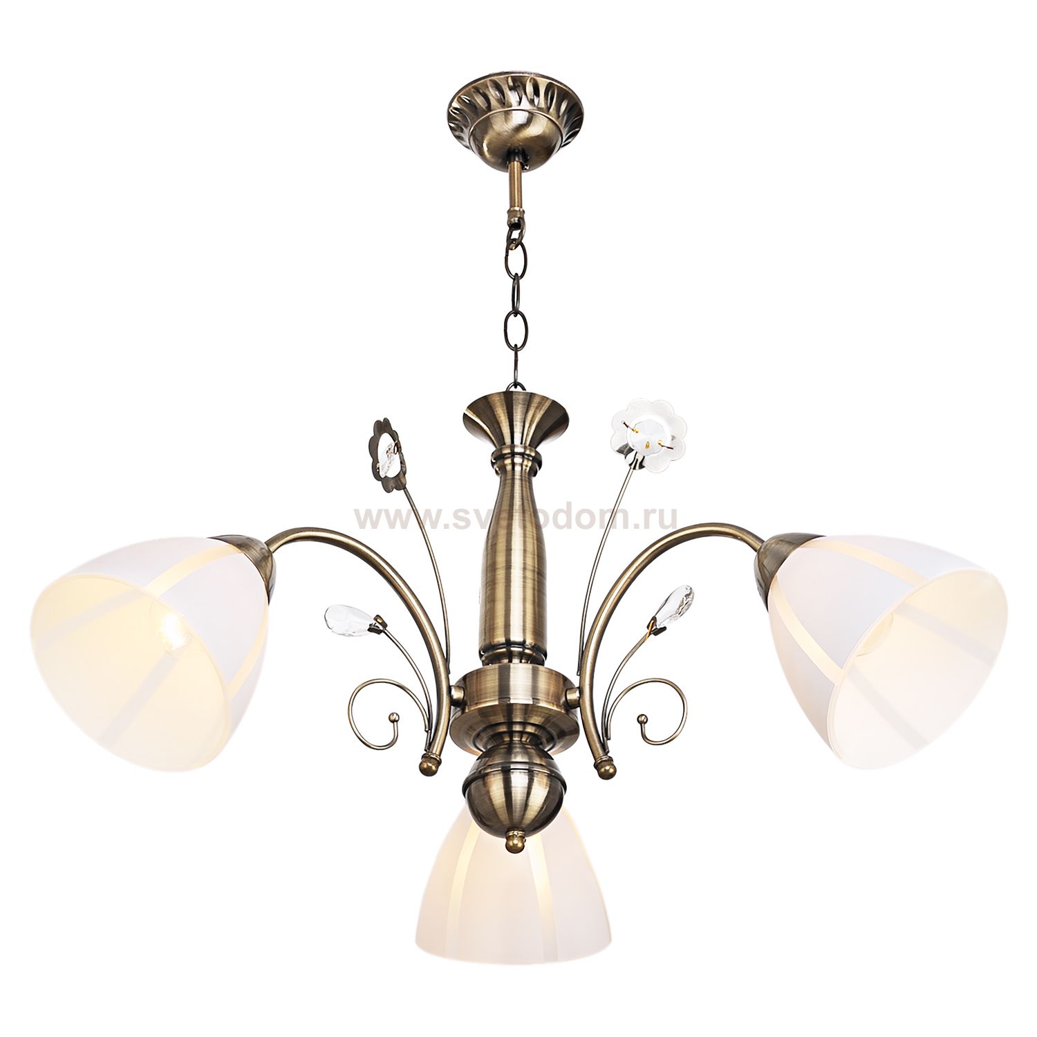 Люстра классическая 3531T/3 от бренда ЭкономСвет. Каркас выполнен из материала металл, цвет античная бронза. Плафоны (светорассеиватели) выполнены из материала стекло, цвет белый. Цоколь E27 рассчитан на лампы максимальной мощности до 60 Вт, а максимальная площадь освещения составит до 7 м?.