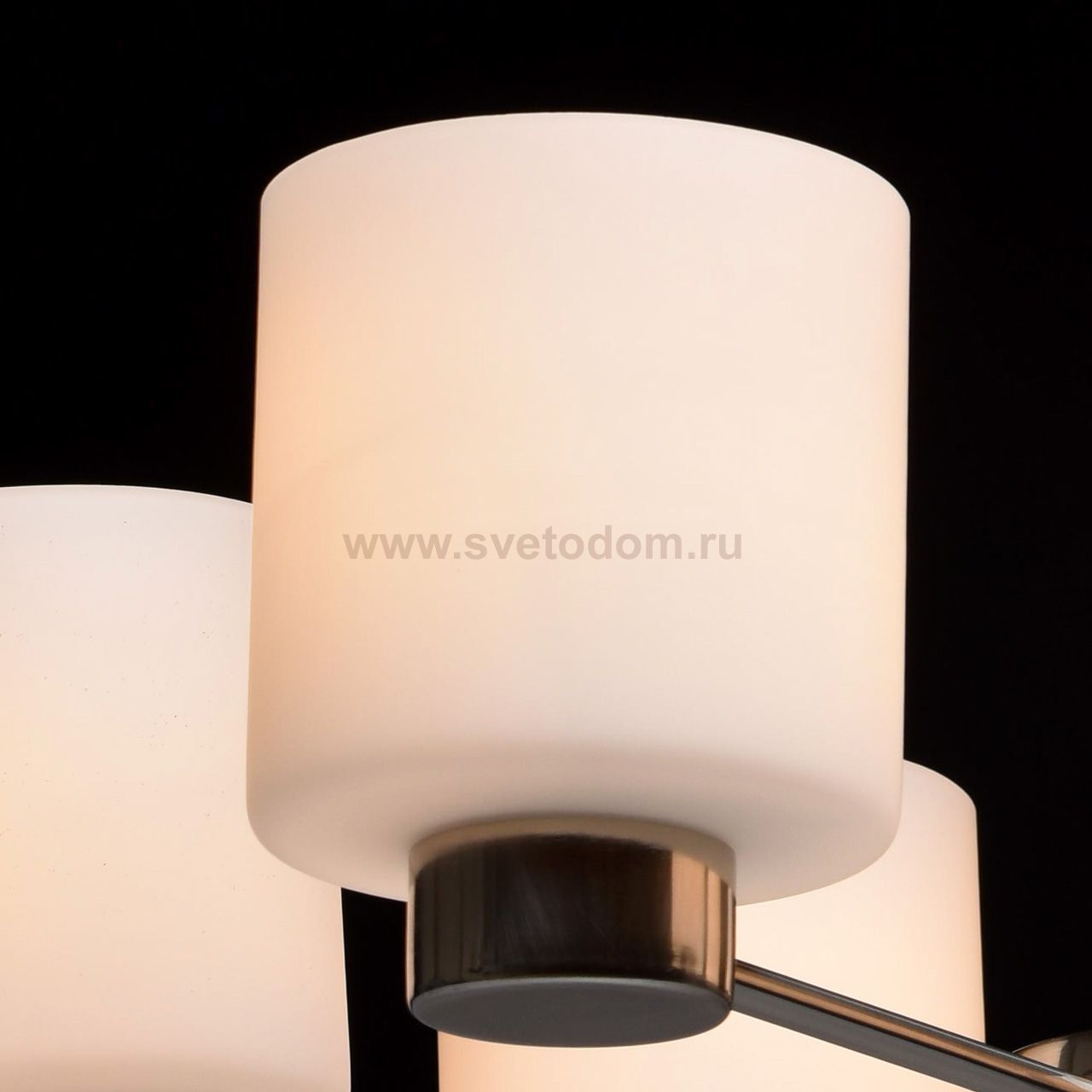 Металлическое матированное основание цвета хрома, плафоны из стекла матово-белого цвета Место применения