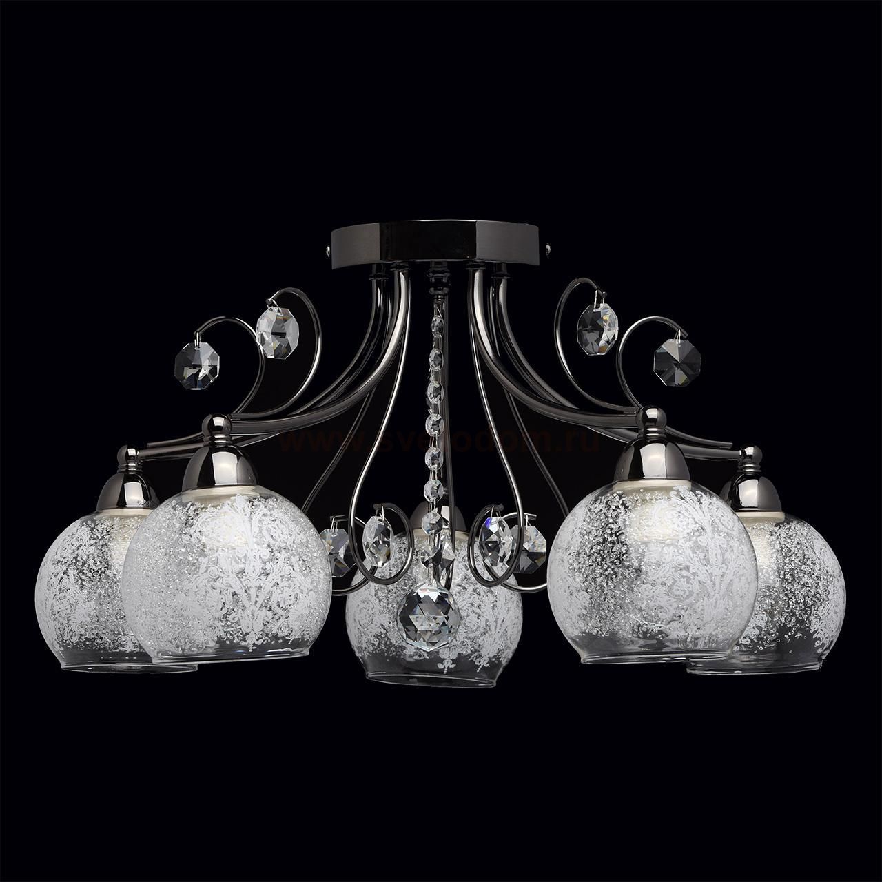 Металлическое основание цвета никеля, стеклянные плафоны, декоративные элементы из хрусталя Место применения