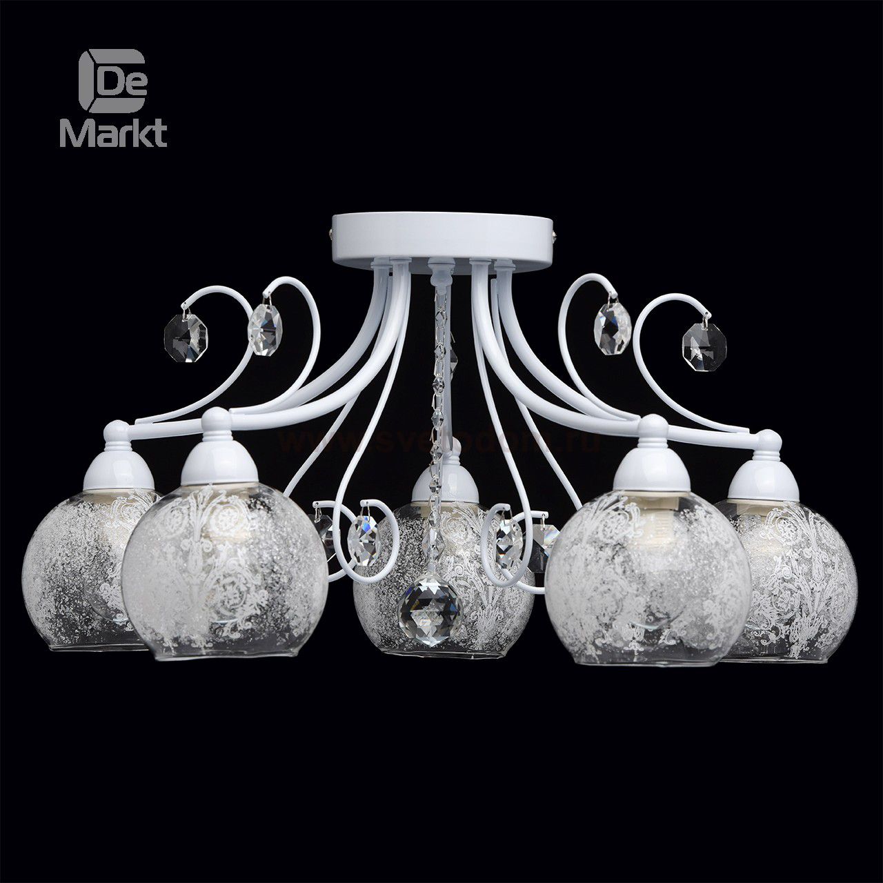 Металлическое основание белого цвета, стеклянные плафоны, декоративные элементы из хрусталя Материал плафона