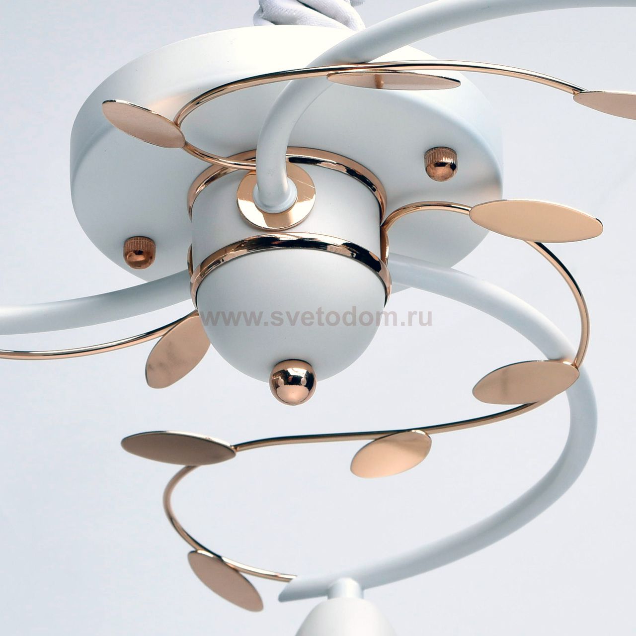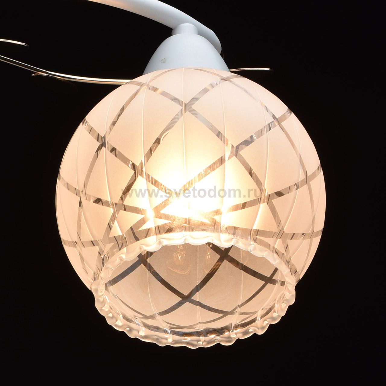 Описание модели 358018803: Нежная, легкая, воздушная люстра из коллекции «Грация» - для любителей светлых тонов в интерьере. Матовое металлическое основание выполнено в белом цвете и прекрасно сочетается с растительным декором цвета французского золота. Дугообразно изогнутые рожки плавно переходят в стеклянные плафоны, которые декорированы прозрачным геометрическим рисунком в форме ромбов, а также рельефной кромкой. Такая люстра идеально подходит для стандартных потолков. Её площадь освещения порядка 15 кв.м.
