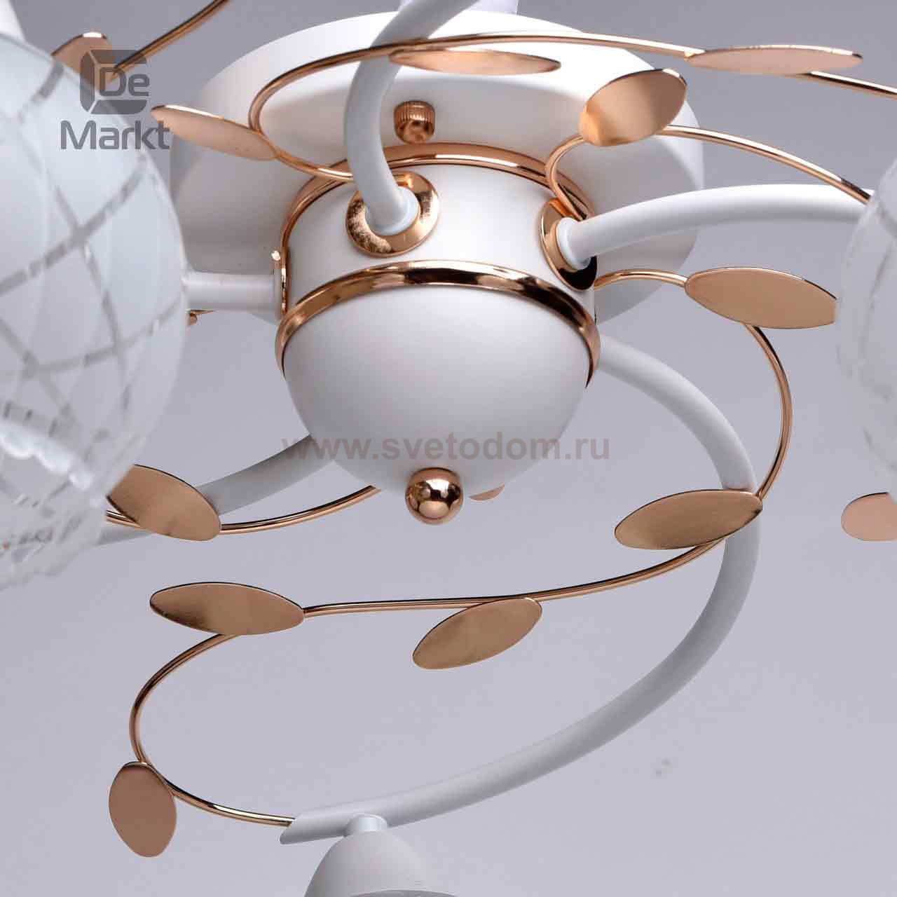 Описание модели 358019005: Нежная, легкая, воздушная люстра из коллекции «Грация» - для любителей светлых тонов в интерьере. Матовое металлическое основание выполнено в белом цвете и прекрасно сочетается с растительным декором цвета французского золота. Дугообразно изогнутые рожки плавно переходят в стеклянные плафоны, которые декорированы прозрачным геометрическим рисунком в форме ромбов, а также рельефной кромкой. Такая люстра идеально подходит для стандартных потолков. Её площадь освещения порядка 15 кв.м.