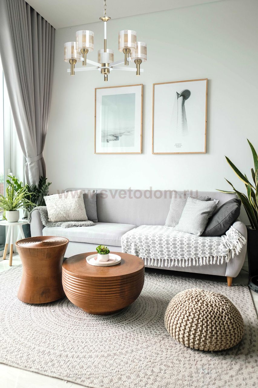 Модное сочетание белого и золотого придает люстре стиль и изысканность.