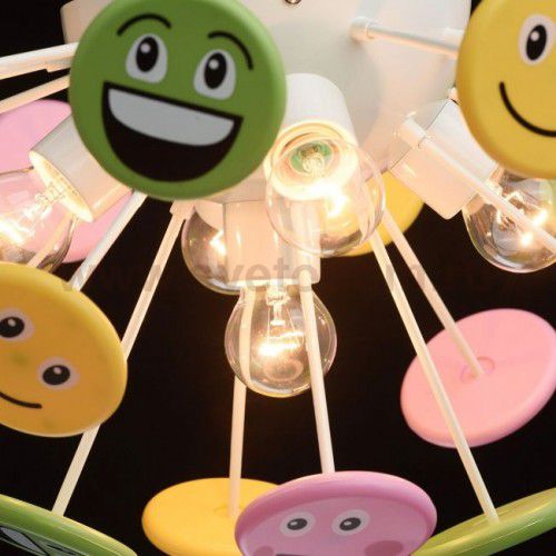Описание модели 365014905: Яркая контрастная гамма светильника Улыбка сразу привлекает к себе внимание. Он станет прекрасным световым решением в детской комнате мальчика или девочки, где всегда царит буйство красок! Оригинальное декоративное оформление – разноцветные, задорные смайлики. Арматура люстры выполнена из окрашенного металла, что даёт люстре из стиля Киндер дополнительные плюсы в части безопасности, длительности срока службы и удобства в эксплуатации