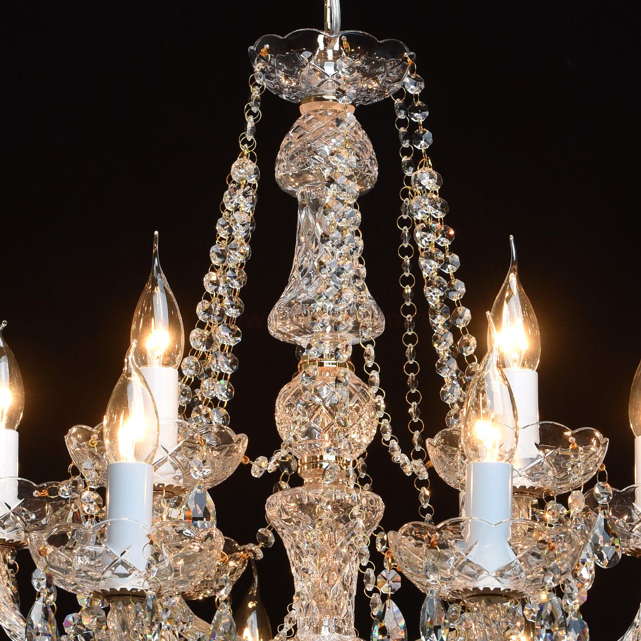 Описание модели 367012918: Люстра из коллекции «Каролина» восхищает своим блеском и великолепием. Основание выполнено из металла цвета французского золота. Изящно изогнутые рожки светильника декорированы витым стеклом, а чаши и декоративные элементы также выполнены из прозрачного рельефного стекла. Финальный штрих композиции – россыпь хрустальных подвесок. Это по-настоящему праздничная люстра, её сияние создает необыкновенную, живую игру света, который преломляется в гранях стекла и хрусталя. Рекомендуемая площадь освещения порядка 54 кв.м.