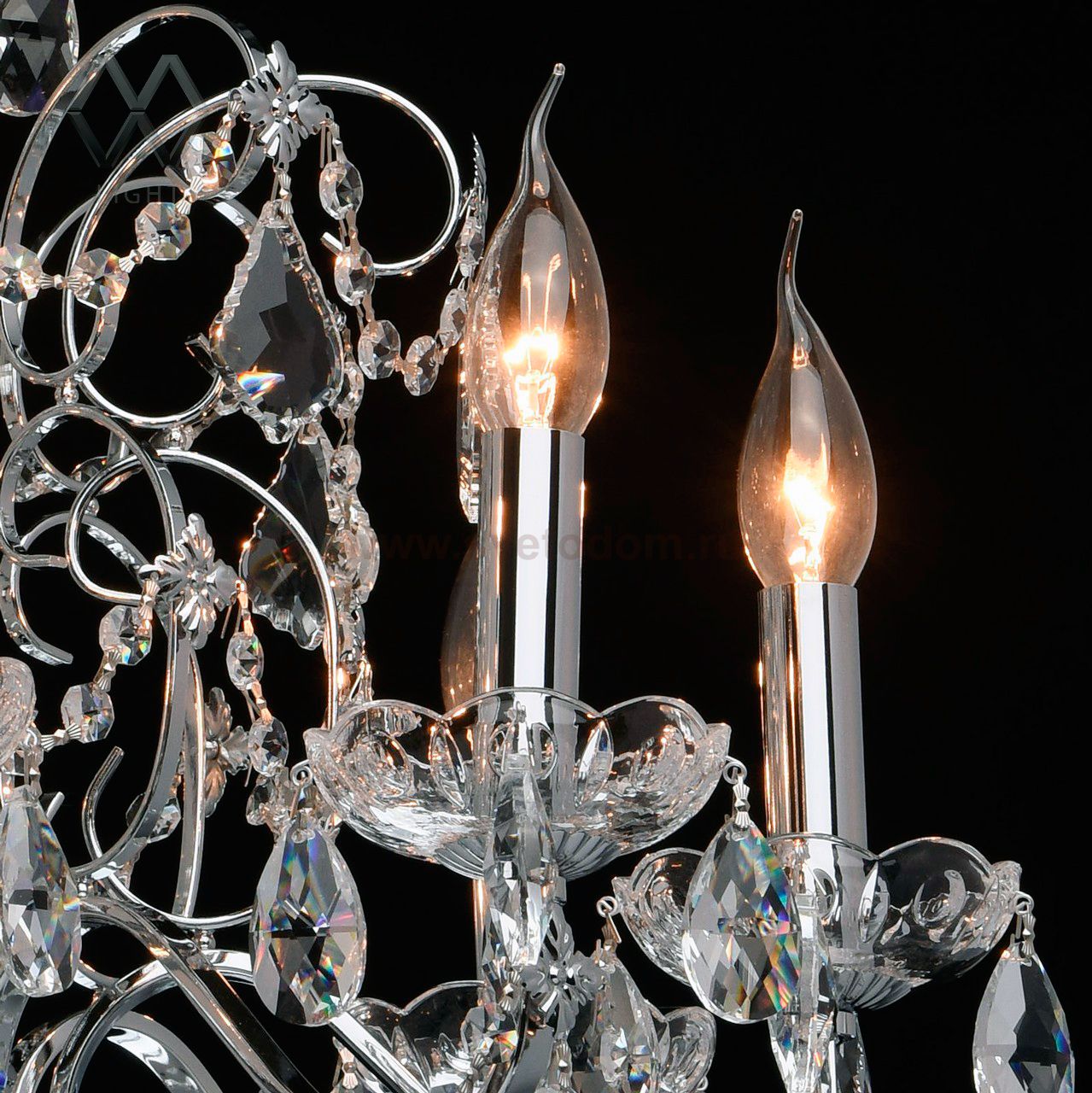 Основание из металла цвета хрома, декоративные элементы из стекла и хрусталя Материал плафона