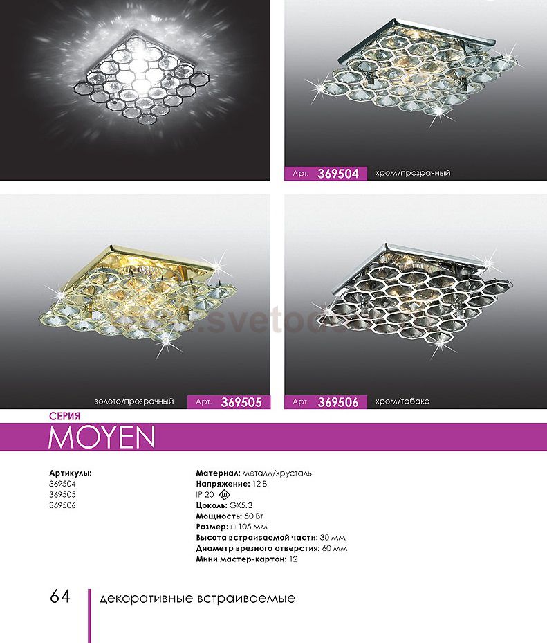 Встраиваемые светильники – популярное осветительное оборудование, которое можно использовать в качестве основного источника или в дополнение к люстре. Они позволяют создать нужную атмосферу атмосферу и привнести в интерьер уют и комфорт. Интернет-магазин «Светодом» предлагает стильный встраиваемый светильник Novotech 369506. Данная модель достаточно универсальна, поэтому подойдет практически под любой интерьер. Перед покупкой не забудьте ознакомиться с техническими параметрами, чтобы узнать тип цоколя, площадь освещения и другие важные характеристики. Приобрести встраиваемый светильник Novotech 369506 в нашем онлайн-магазине Вы можете либо с помощью «Корзины», либо по контактным номерам. Мы развозим заказы по Москве, Екатеринбургу и остальным российским городам.