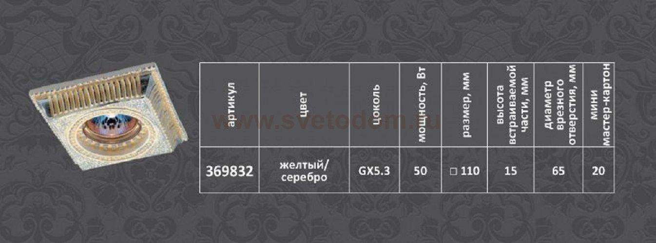 369832 NT12 желтый/серебро Встраиваемый светильник IP20 GX5.3 50W 12V SANDSTONE Штрих-код