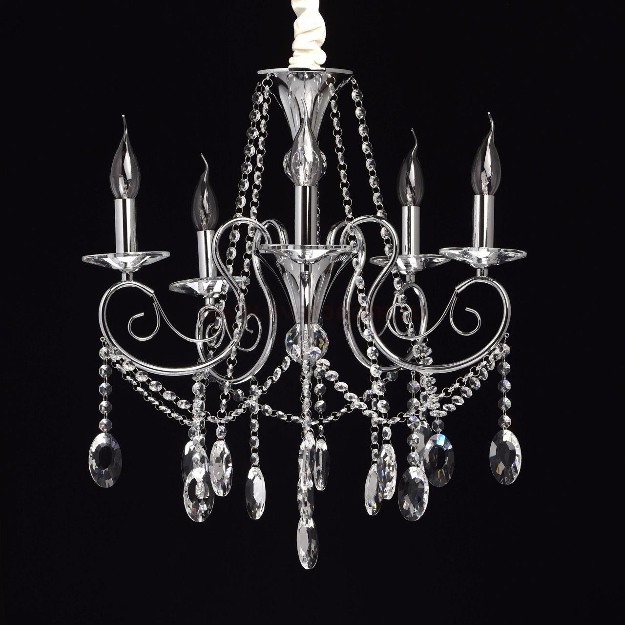 Люстра отличается особым изяществом благодаря тонко изогнутым рожкам цвета хрома.